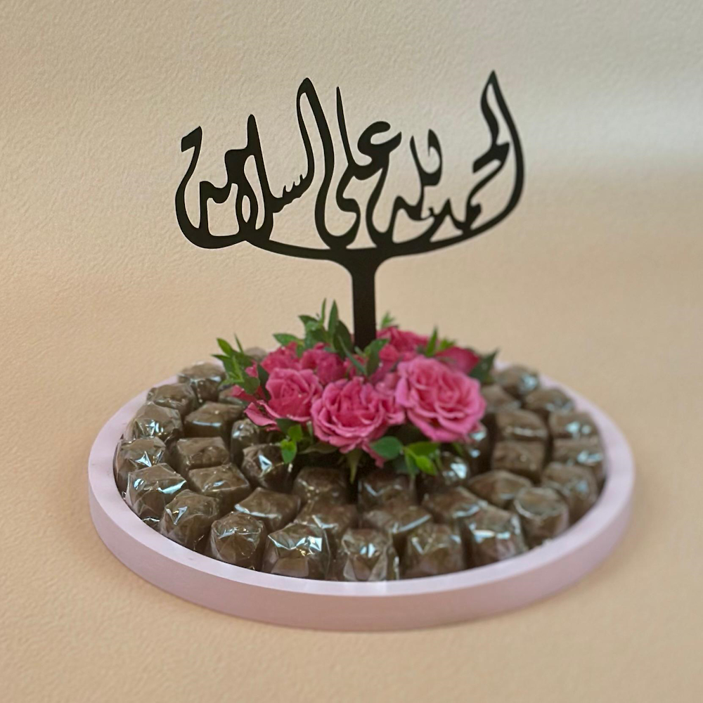 A tray filled luxurious Belgian chocolate, with baby roses.