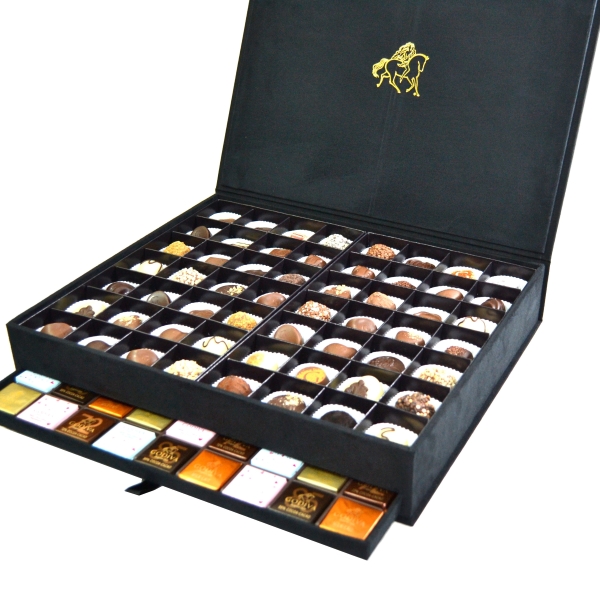 This box contains 56 different types of Godiva chocolates and 144 Carres.