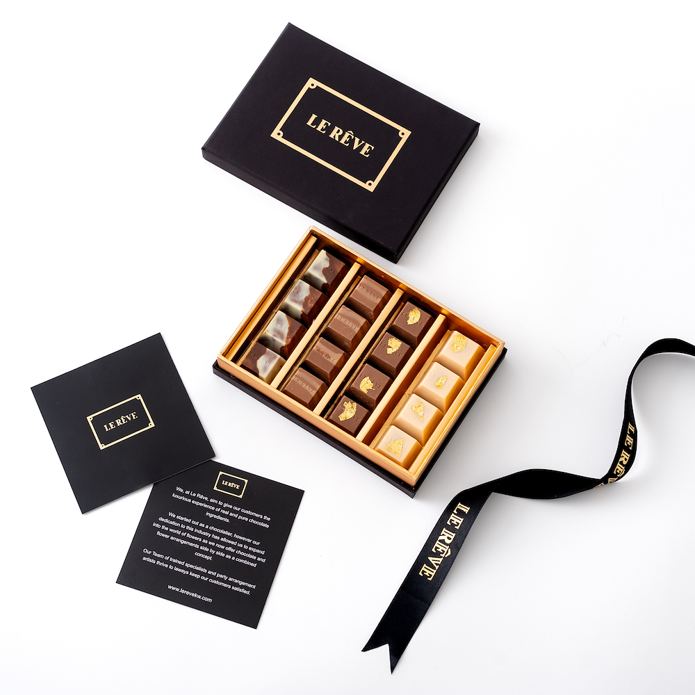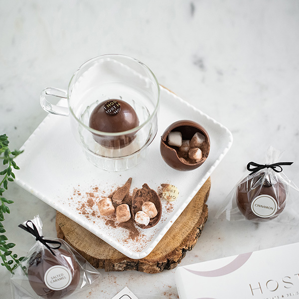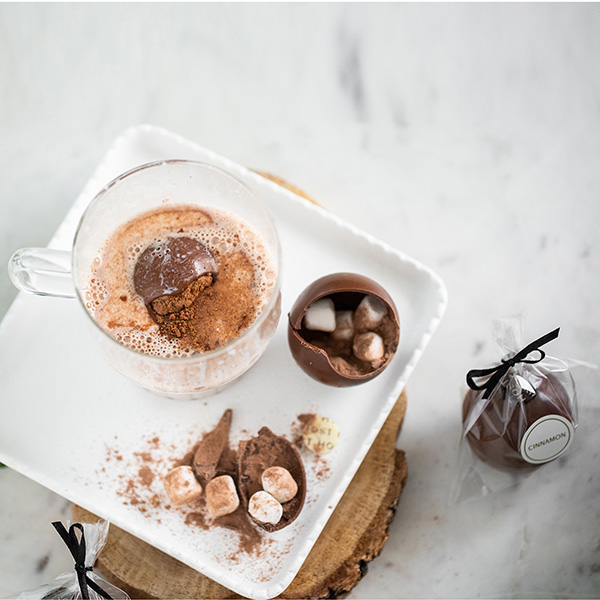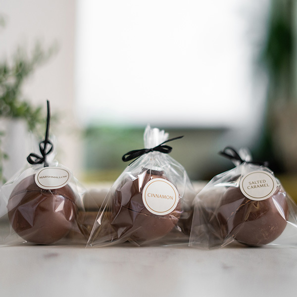 A package of 12 chocolate balls with 3 different flavors: marshmallow, cinnamon, and salted caramel. Just add it to a cup of hot milk and enjoy your hot chocolate drink.