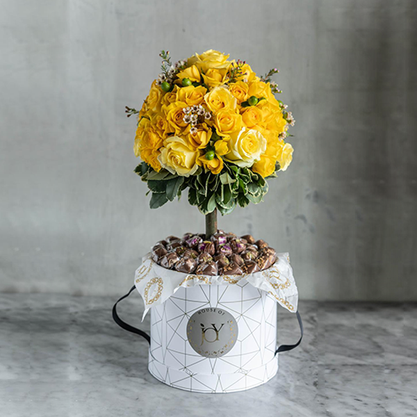 Tree of joy, yellow flowers with 500 grams chocolate.