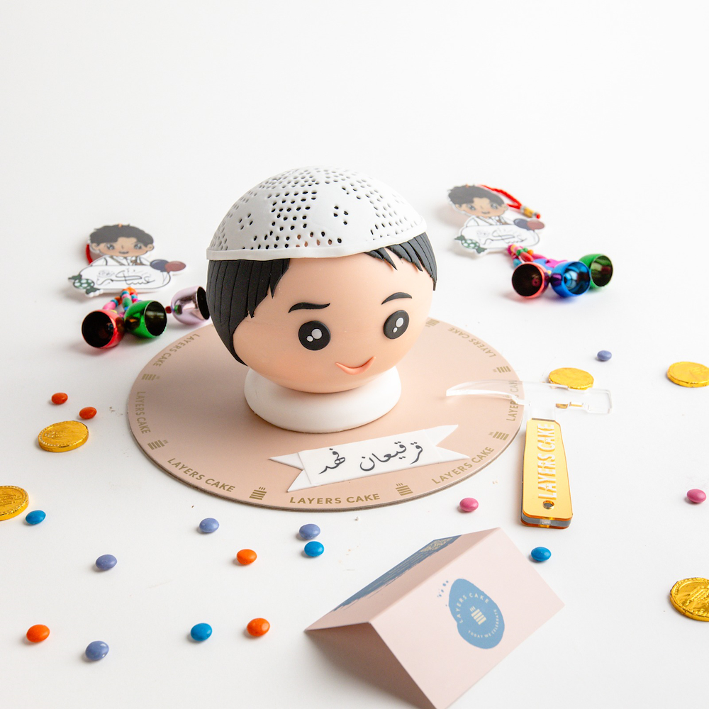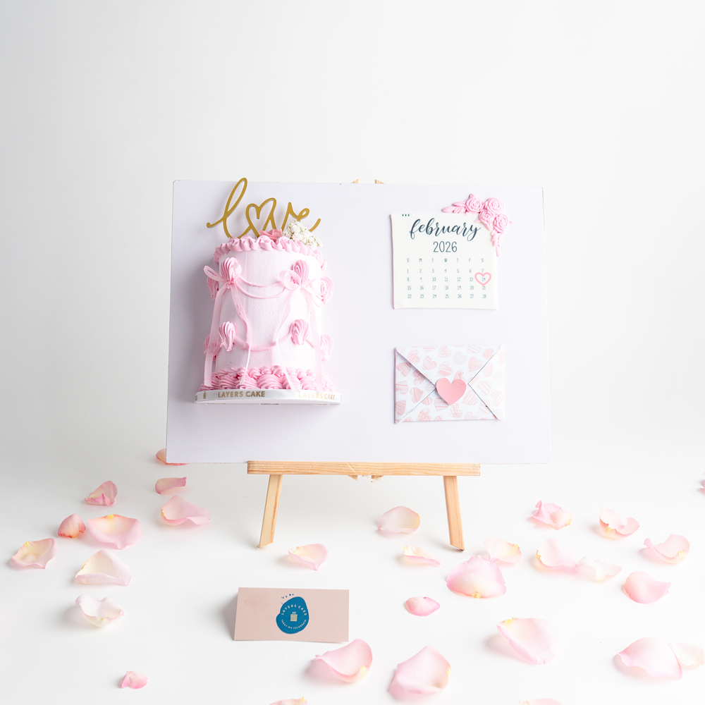 A 4 inch mini red velvet cake serving 2 to 3 people, featuring our amazing cream frosting, with a surprise message to put your love on display, and a wooden stand provided.
