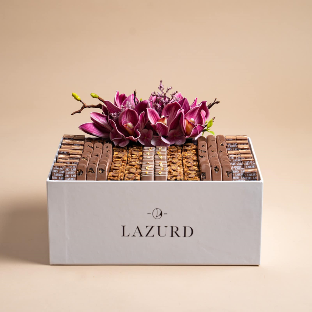 A box featuring assorted best seller chocolate 1.350 kg with natural flowers.
