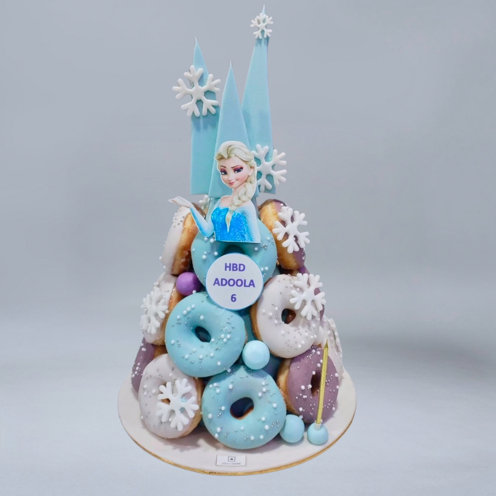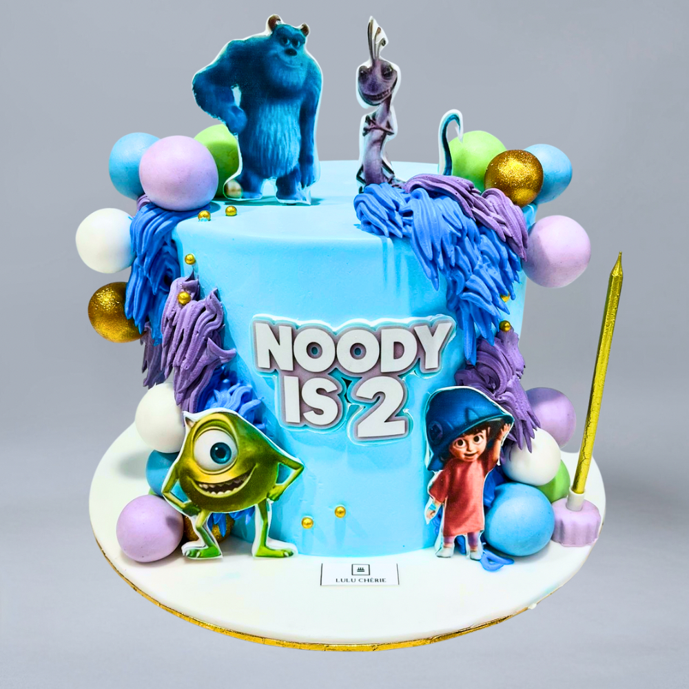 A 7 inch gourmet mix cake flavor of chocolate with salted caramel and Madagascar vanilla cream cheese, the cake decoration is edible.