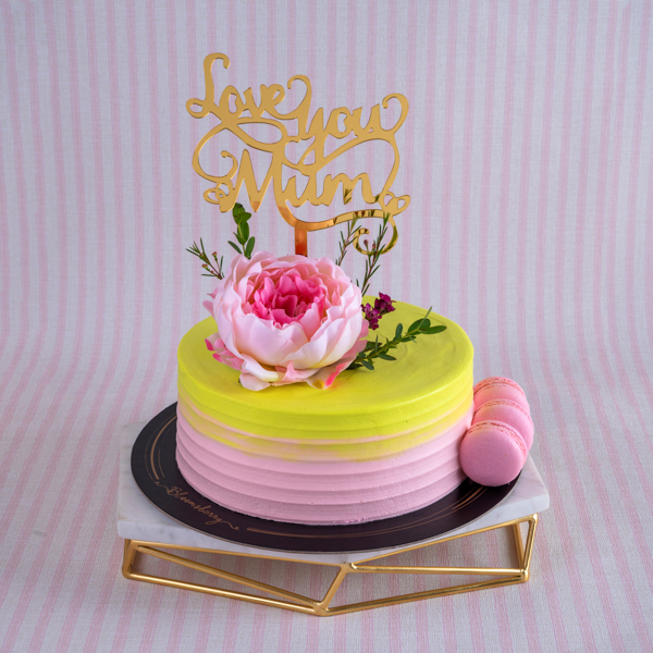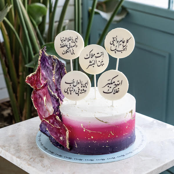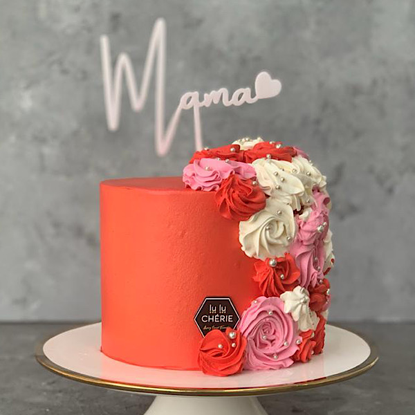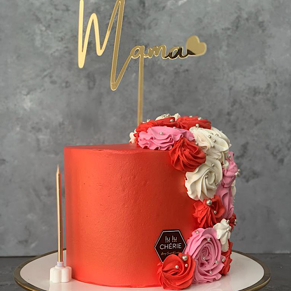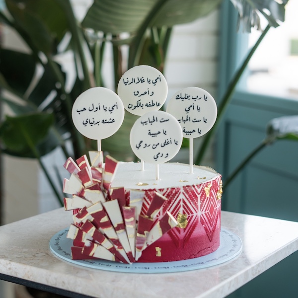A 7-inch gourmet mix cake of chocolates with salted caramel and Madagascar vanilla cream cheese, the cake decoration is edible.
