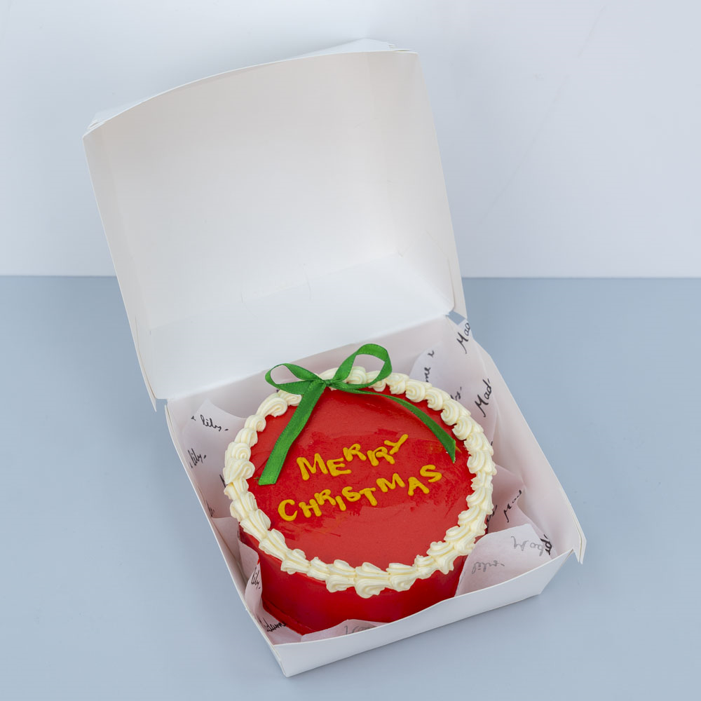 Yummy 4 inches bento lunch box chocolate cake for 2 persons served In a carton box.