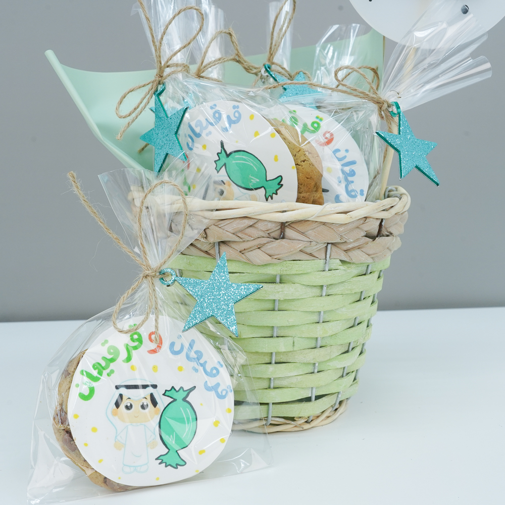 12 pcs of cookies giveaways in a basket.