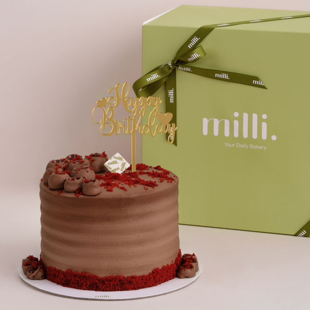 A 6-inch mixed chocolate and red velvet cake with a chocolate mousse filling, enough for 6 to 8 people.