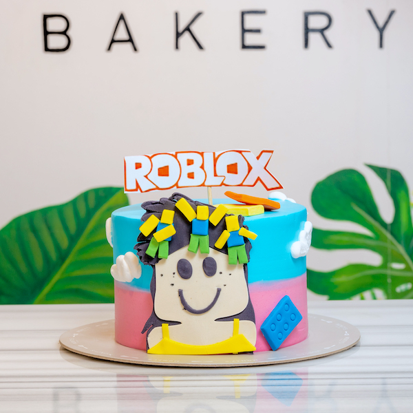 A 6 inch vanilla cake, decorated with a Roblox girl character.