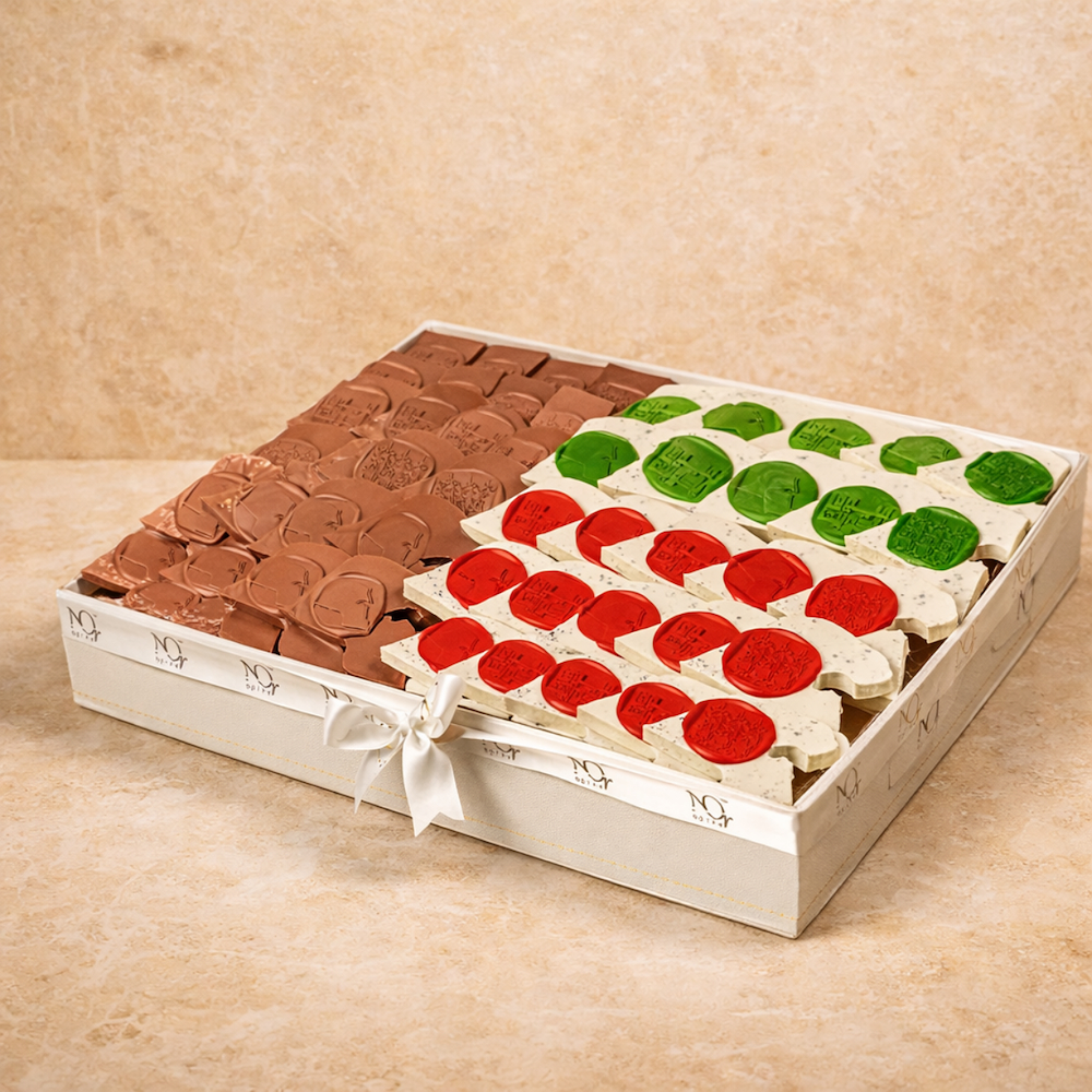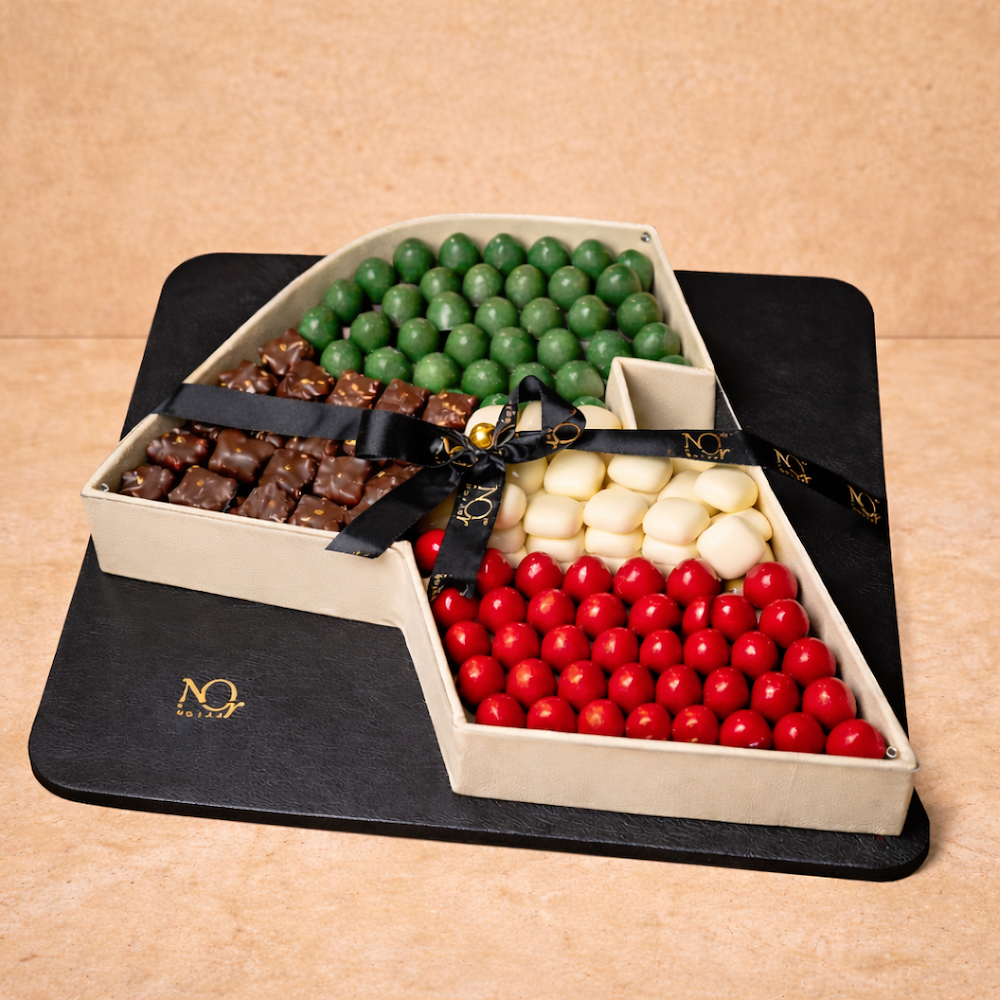 A generously filled National Day tray featuring 2.75 kg of chocolate, thoughtfully arranged for an elegant and festive presentation.
