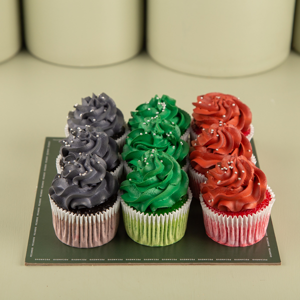 9pcs cupcakes in a 3 assorted Kuwait colors.