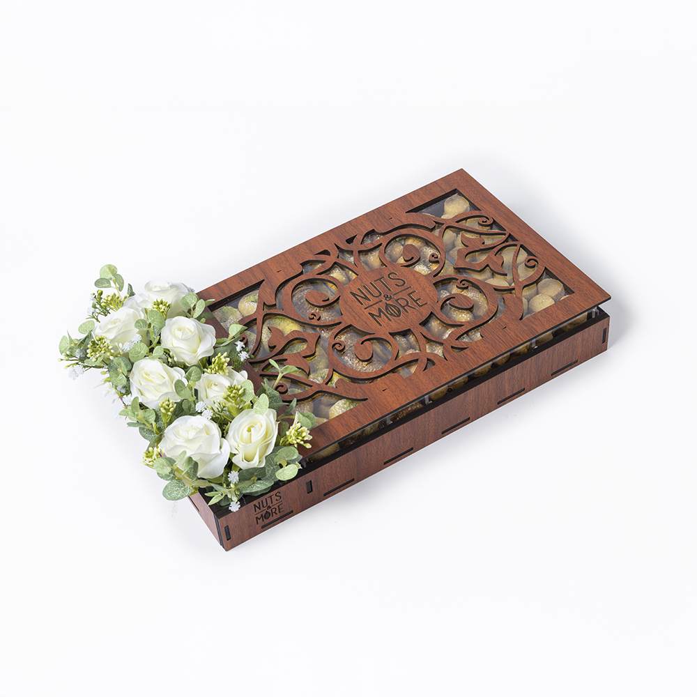 A box that contains 4 kinds of Arabic sweets (damlooj walnuts and pistachio, royal ghuraiba and samsamiyah).