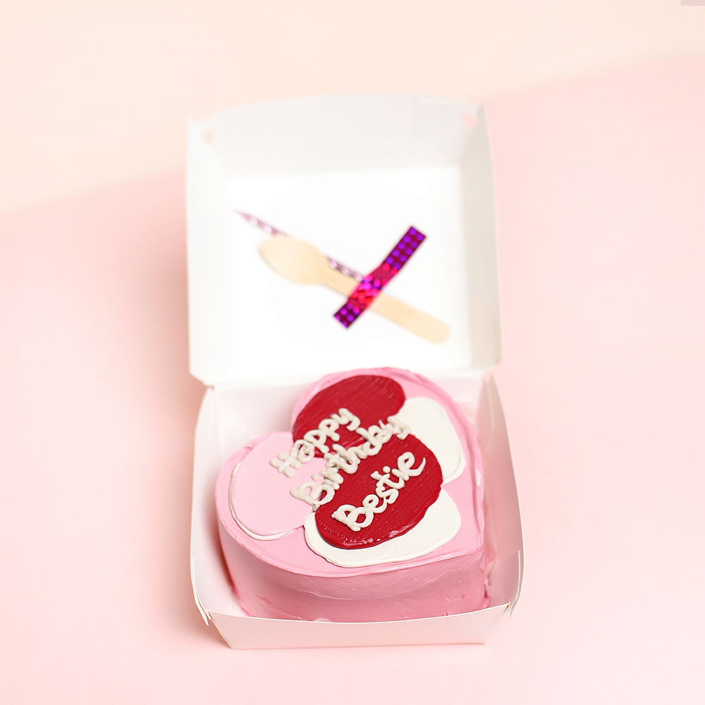 A 4-inch bento cake, enough for 2 people, comes with a spoon, and a candle.