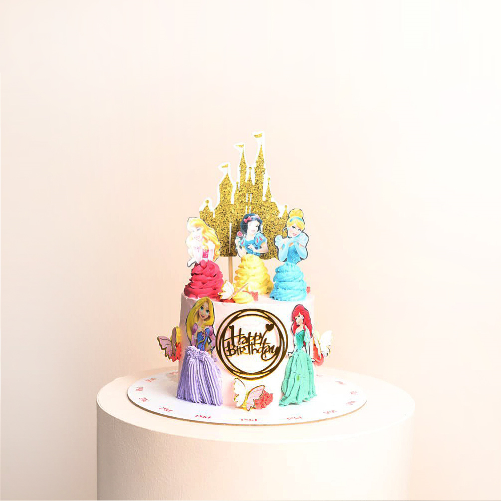 A 6-inch Disney princess-themed cake in chocolate and vanilla flavors.