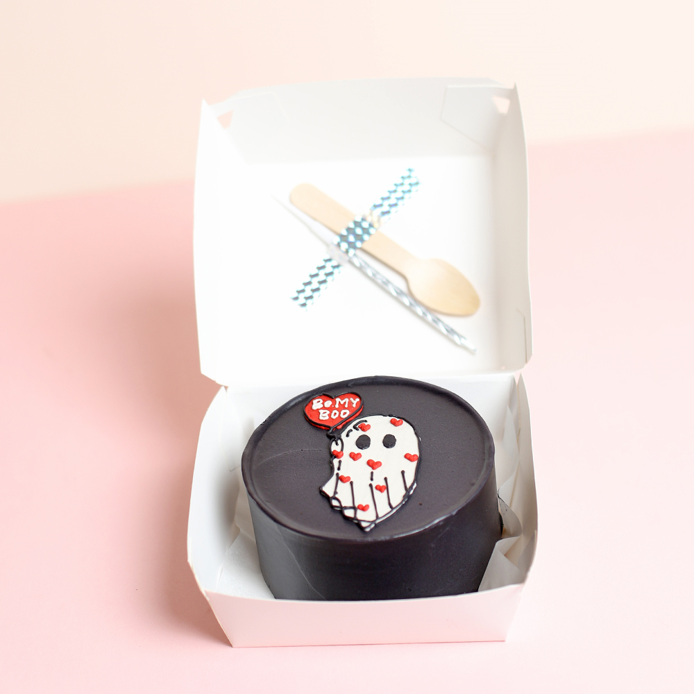 A 4 inch lunch box bento cake for 2 persons with a spoon and a candle.