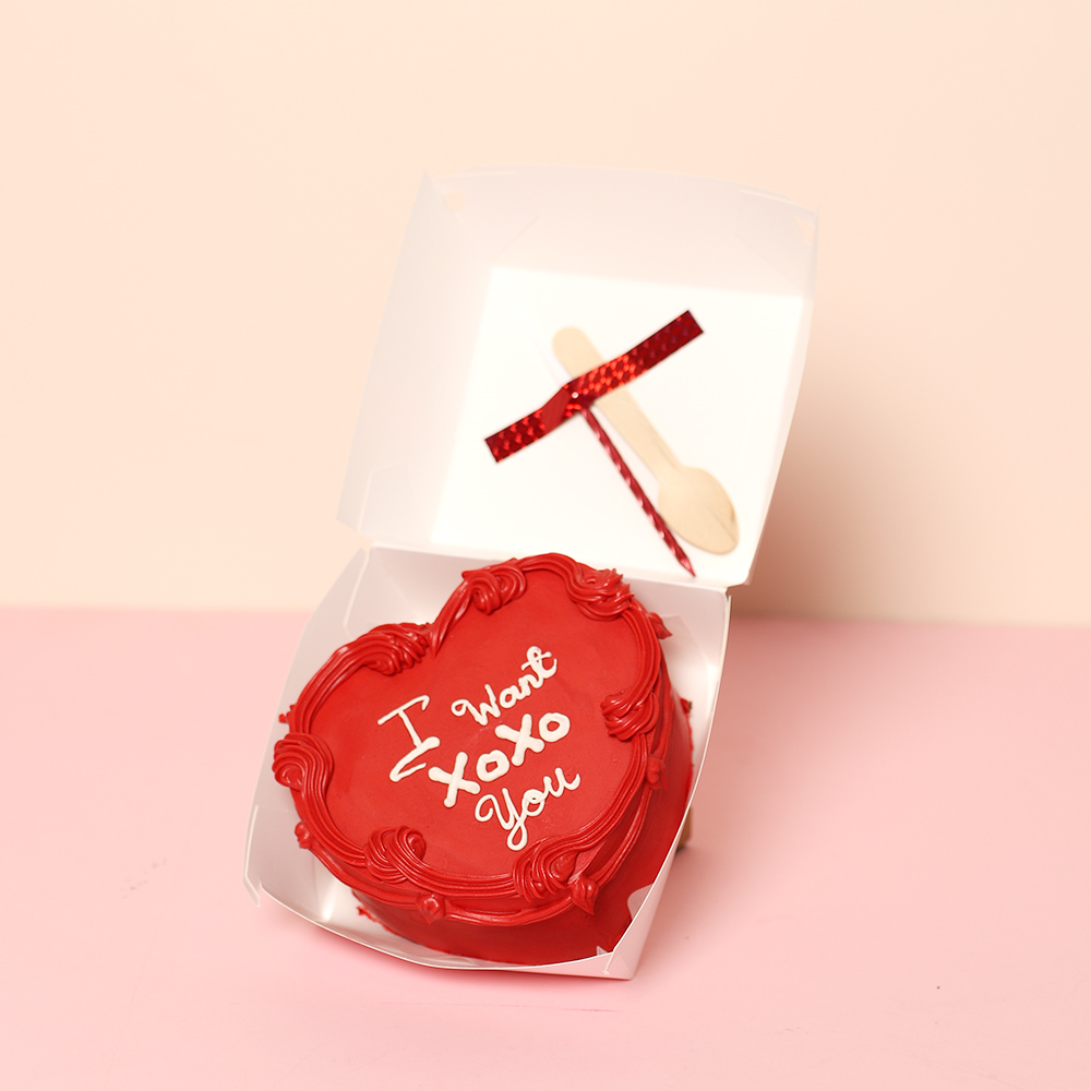 The ultimate portable Love Day treat. Perfectly sized for sharing, this white heart cake is gift-wrapped in a bento box and includes a wooden spoon and candle for a hassle-free celebration anywhere.