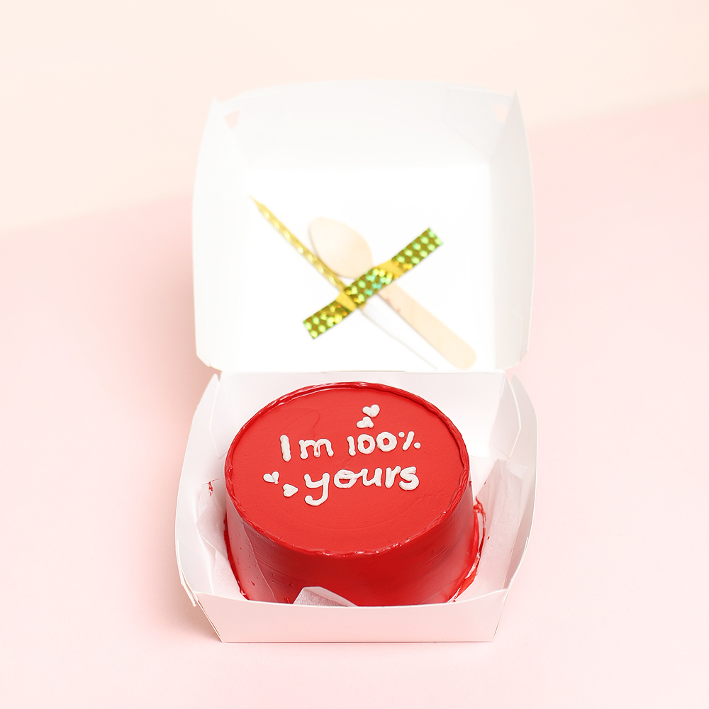A 4-inch bento cake, enough for 2 people, comes with a spoon, and a candle.