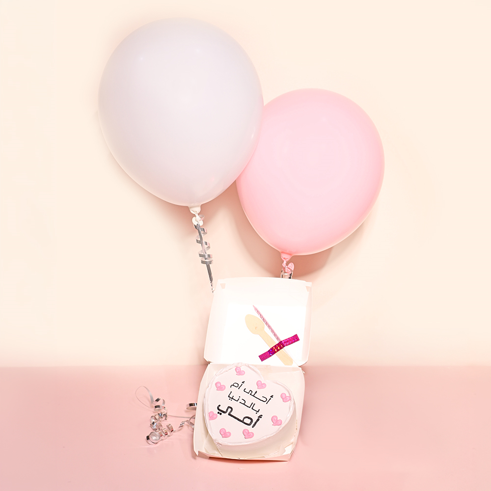 A 4-inch cake enough for 2 people, comes with 2 balloons, a candle and a spoon.