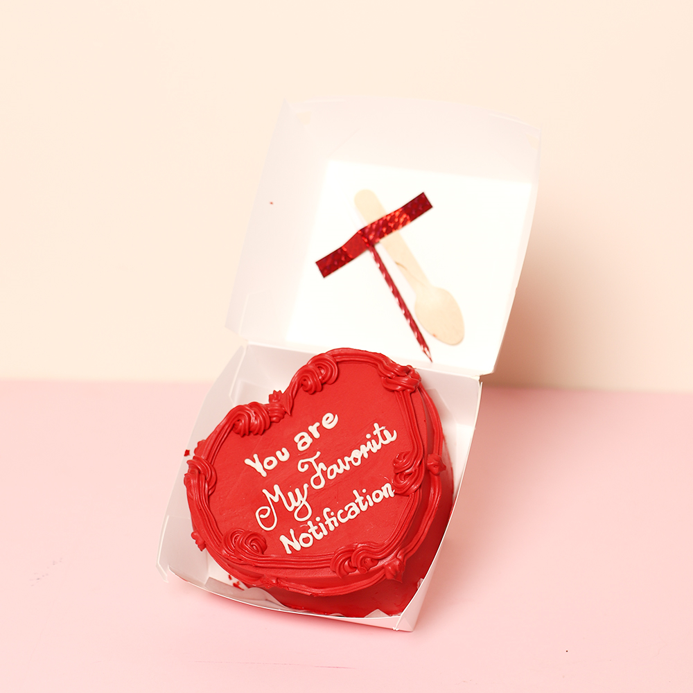 The ultimate portable Love Day treat. Perfectly sized for sharing, this deep red heart cake is gift-wrapped in a bento box and includes a wooden spoon and candle for a hassle-free celebration anywhere.