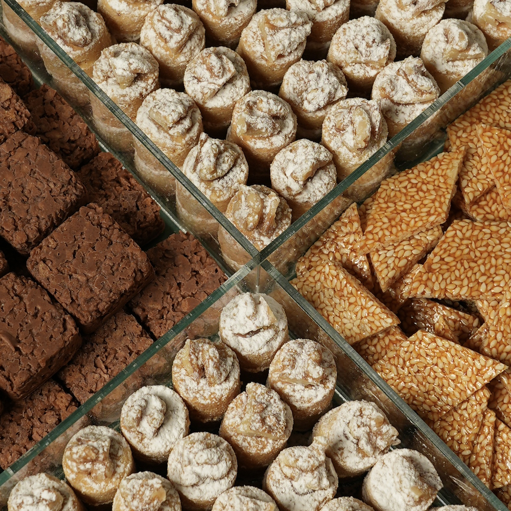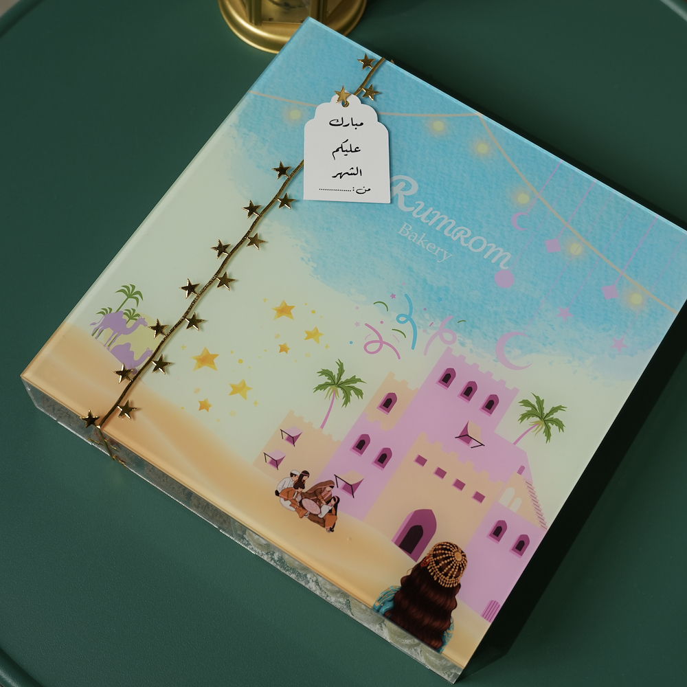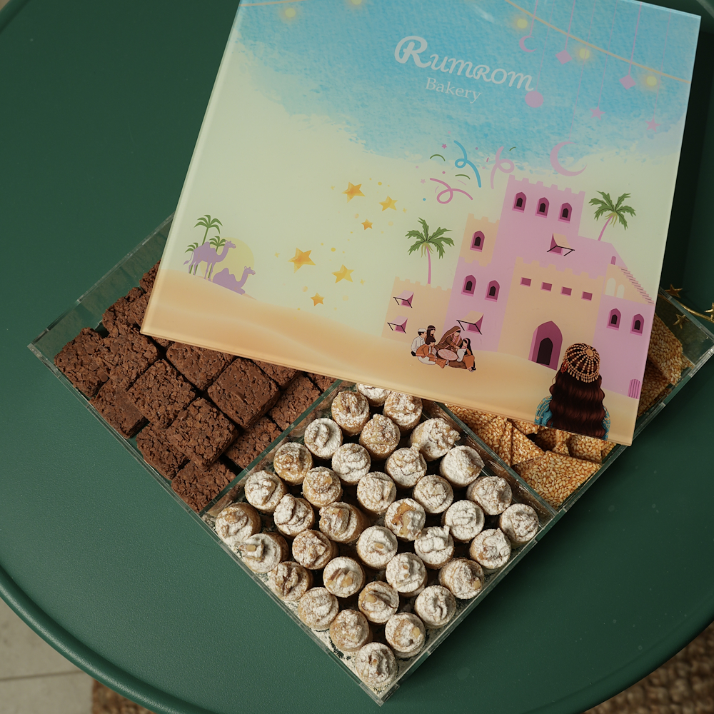 A special box for Ramadan containing 144 pieces of Ghuraiba, 25 pieces of chocolate, and 200g of Simsimiyah.