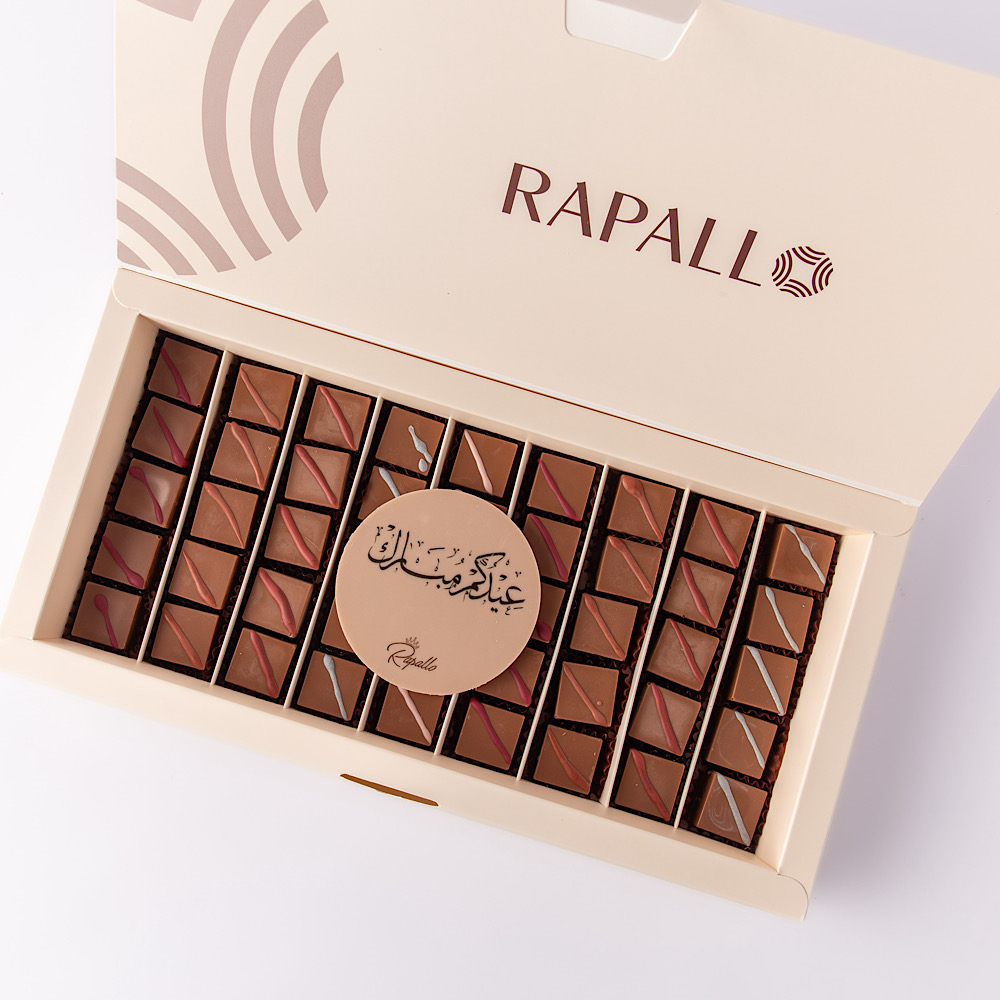 A luxurious chocolate box specially designed for Eid occasions, featuring a diverse assortment of premium chocolates made from the finest cocoa. An ideal gift to celebrate Eid with loved ones.