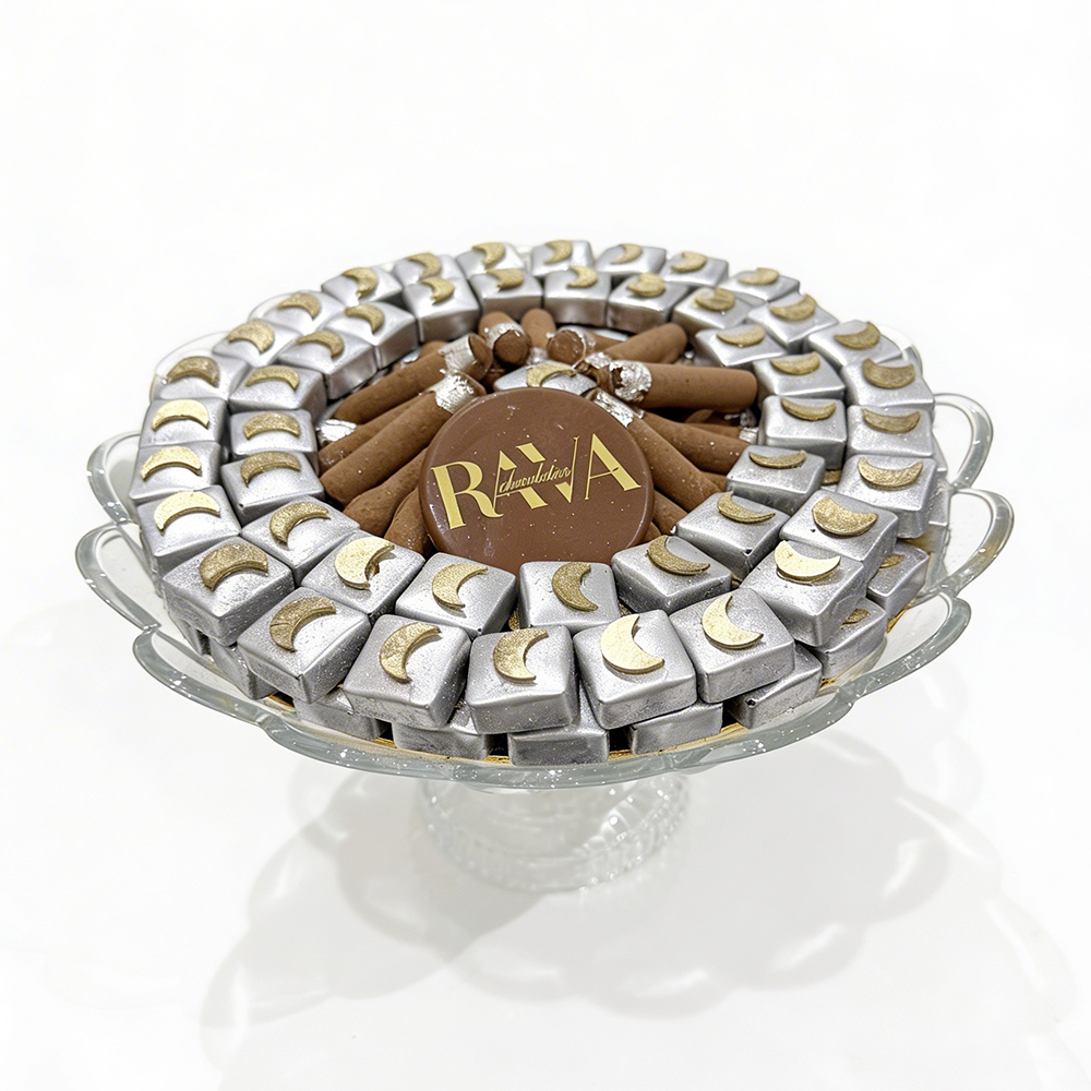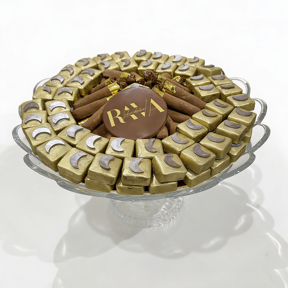 An exquisite Ramadan luxury tray featuring a premium selection of Chocolate and traditional sweets. Perfect for breaking fast or gifting during the holy month.