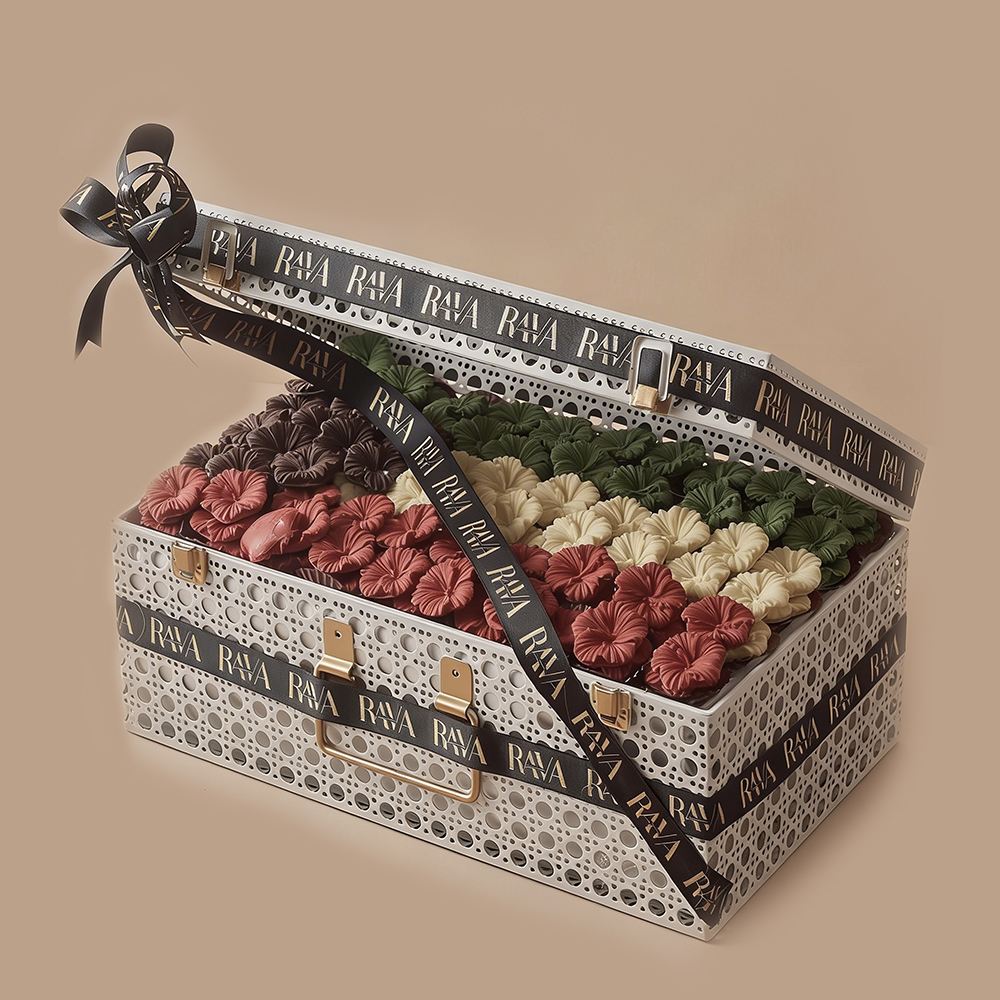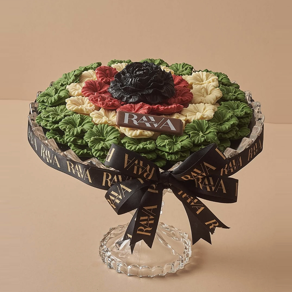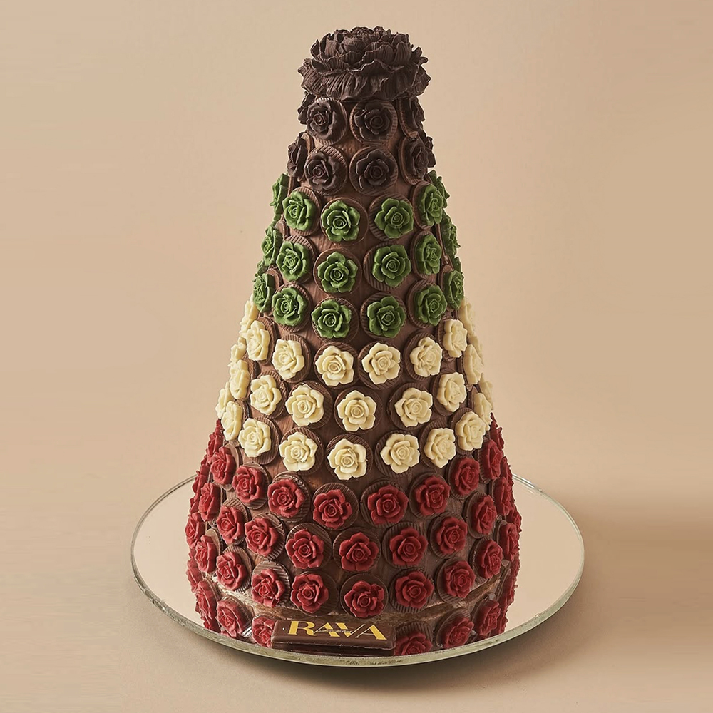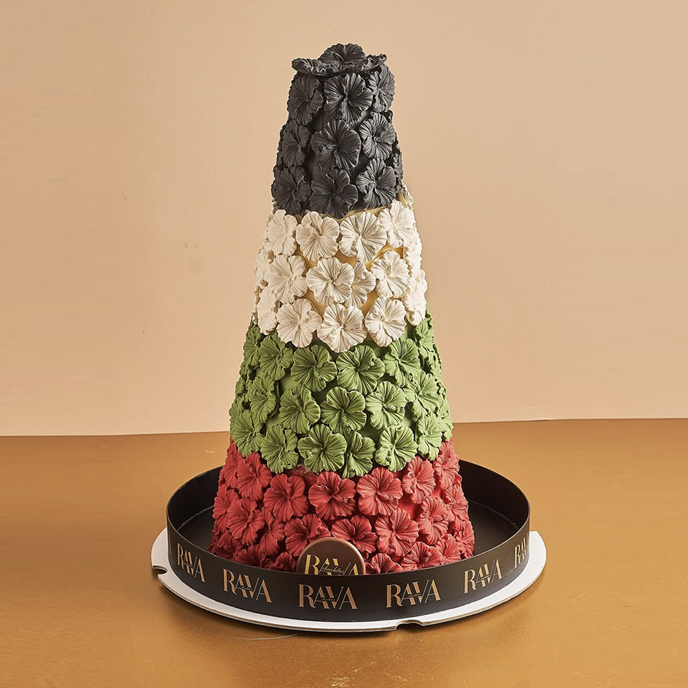 A magnificent tower celebrating Kuwait National Day with layers of rich chocolates and sweet cream topped with festive decorations