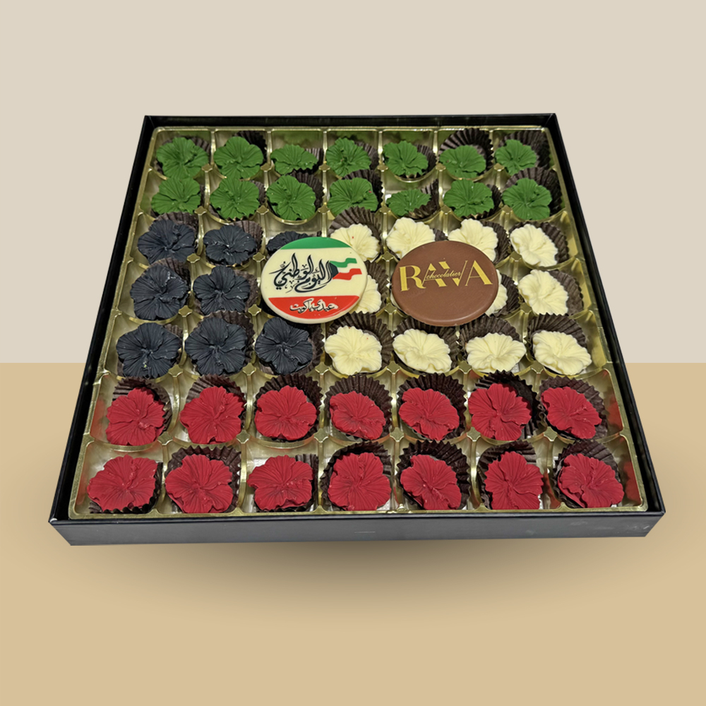 Celebrate Kuwait's National Day with our special square box filled with delicious chocolates. Perfect for sharing during the festivities and showing your patriotic spirit.