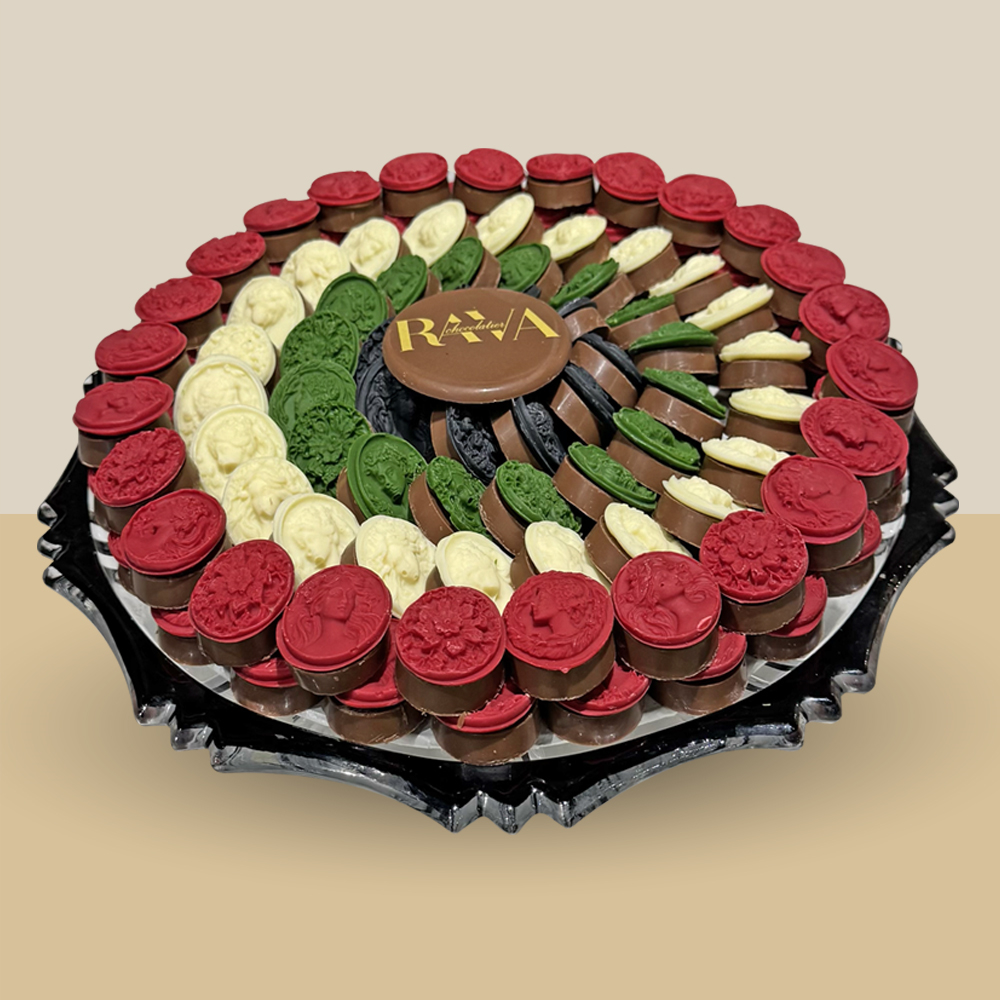 Celebrate Kuwait's National Day with our festive tray featuring an assortment of delicious chocolates arranged in patriotic colors. Perfect for gatherings and celebrations honoring this special occasion.