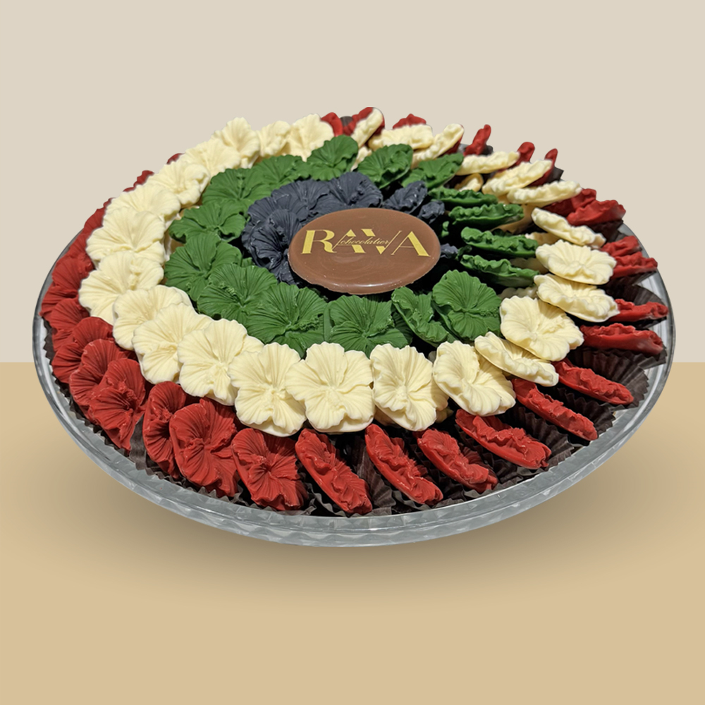 Celebrate Kuwait's National Day with our festive tray featuring an assortment of traditional chocolates and decorative elements in national colors, perfect for your patriotic gatherings.