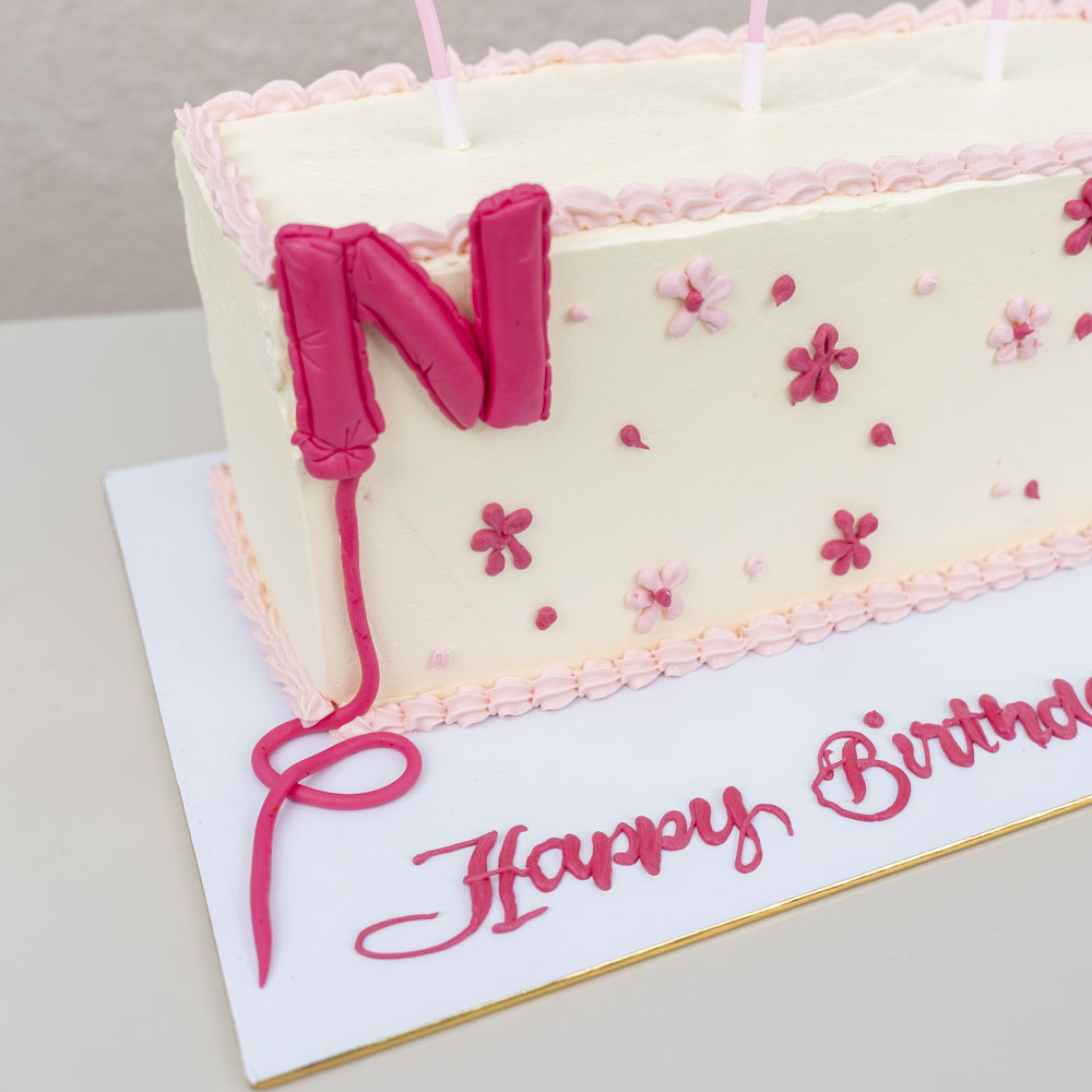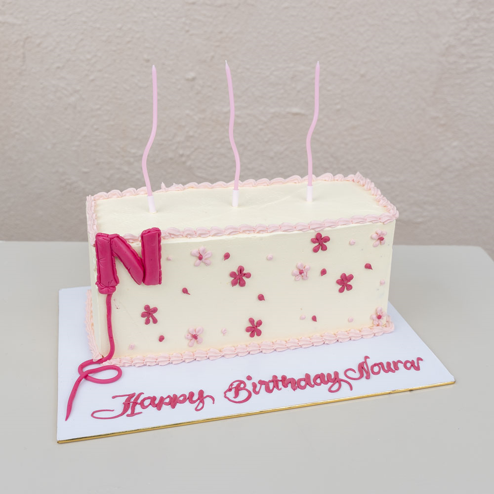 A cake in a beautiful design. Flavors are: chocolate, vanilla, or red velvet.