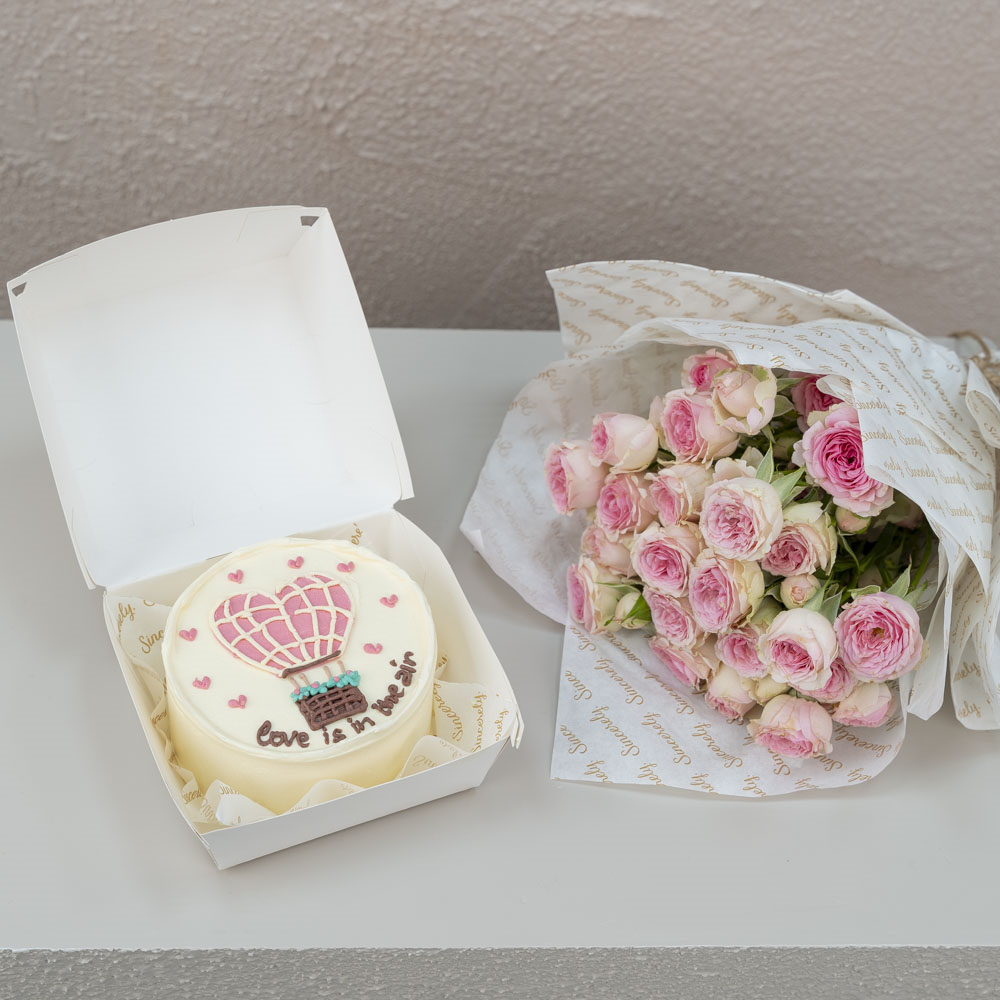 Yummy 4 inches chocolate cake for 2 persons with a medium size flower bouquet of roses.