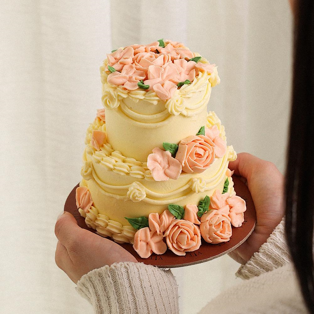 A beautifully decorated 2-layer cake in a floral design, elegantly presented in a gift box. Perfect for celebrations and special moments.