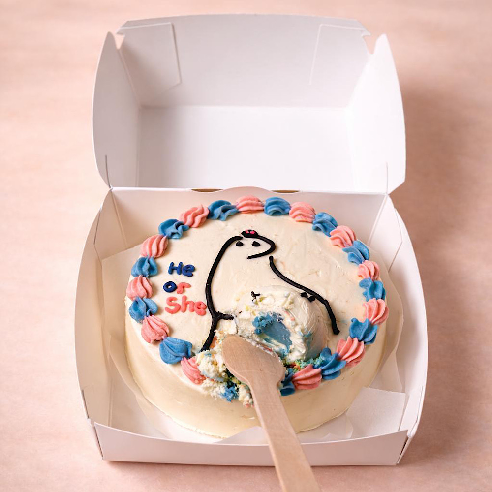 A vanilla bento cake for gender reveal.