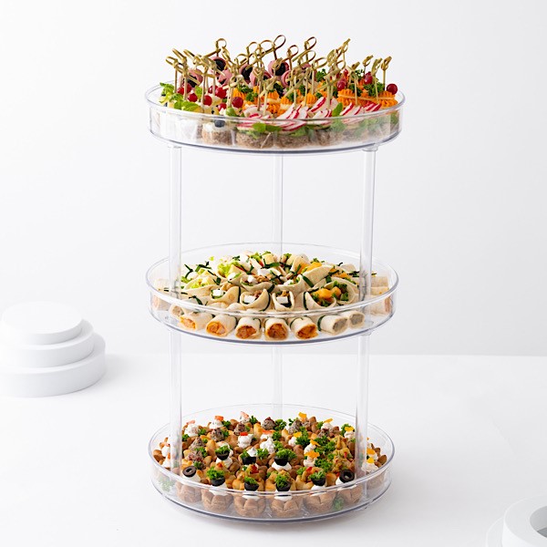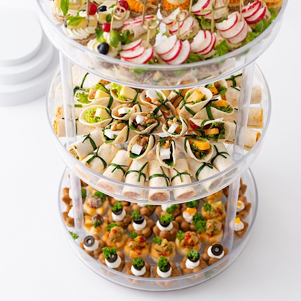 This tray contains 42 pieces of canapes, 45 pieces of wrap n roll and 45 pieces of mini fatayer.