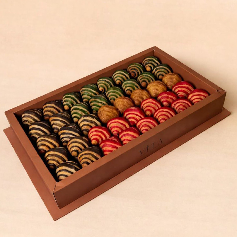 A box containing 40 baked croissants, perfect for gatherings, spreads, or gifting.