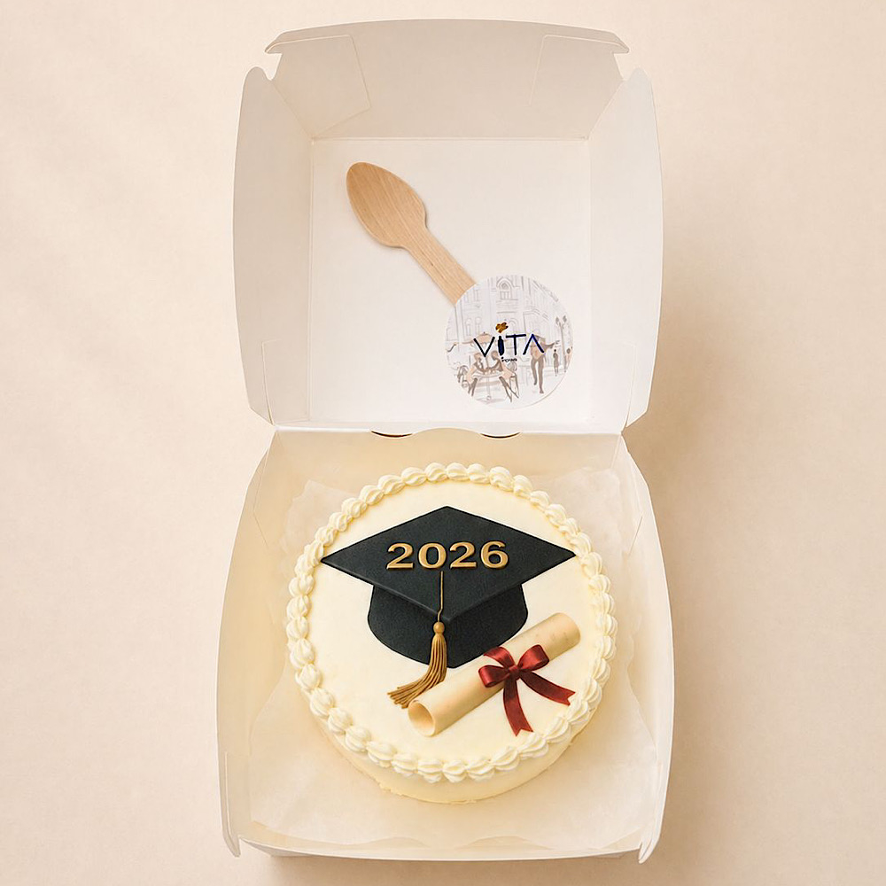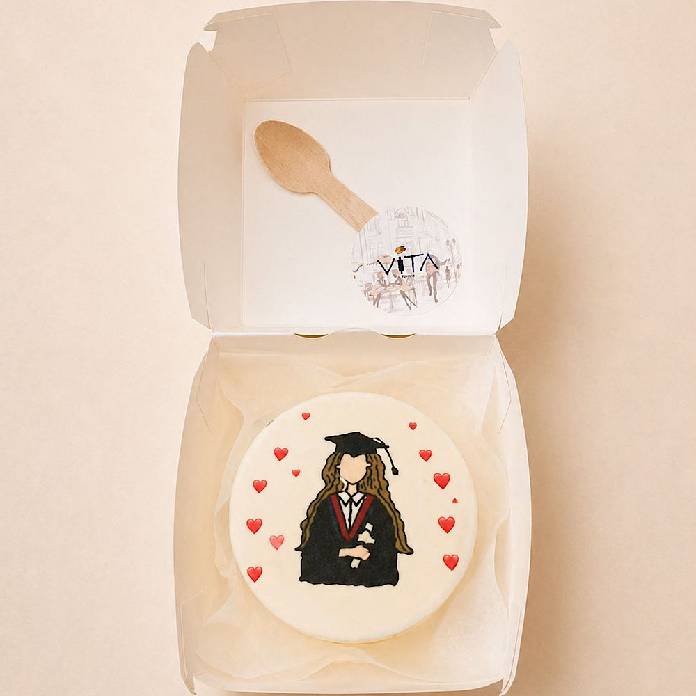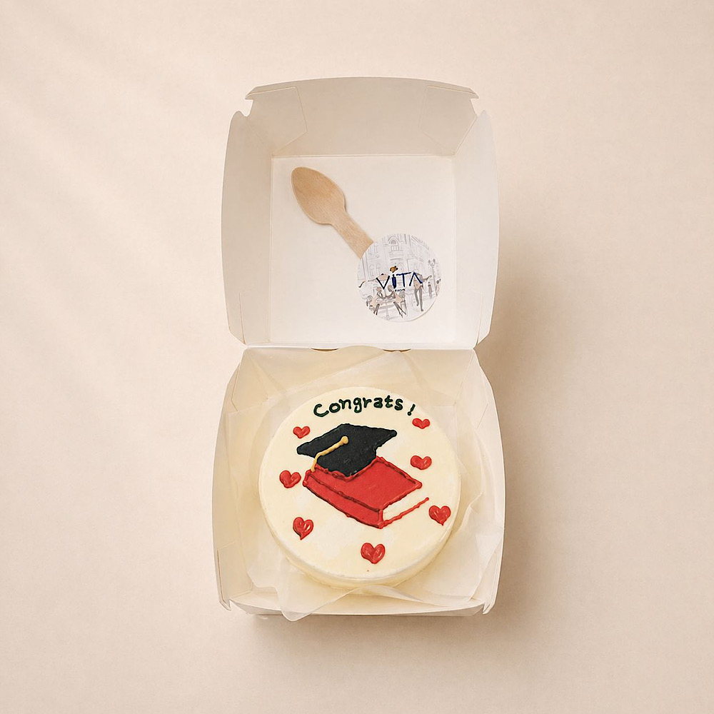 A vanilla bento cake in a beautiful design.