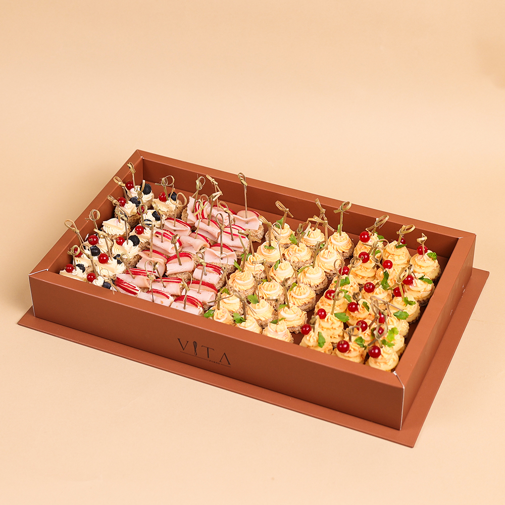 This box contains 60 pieces of canapés (cheeses and turkey).