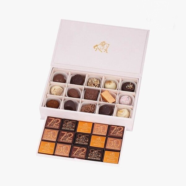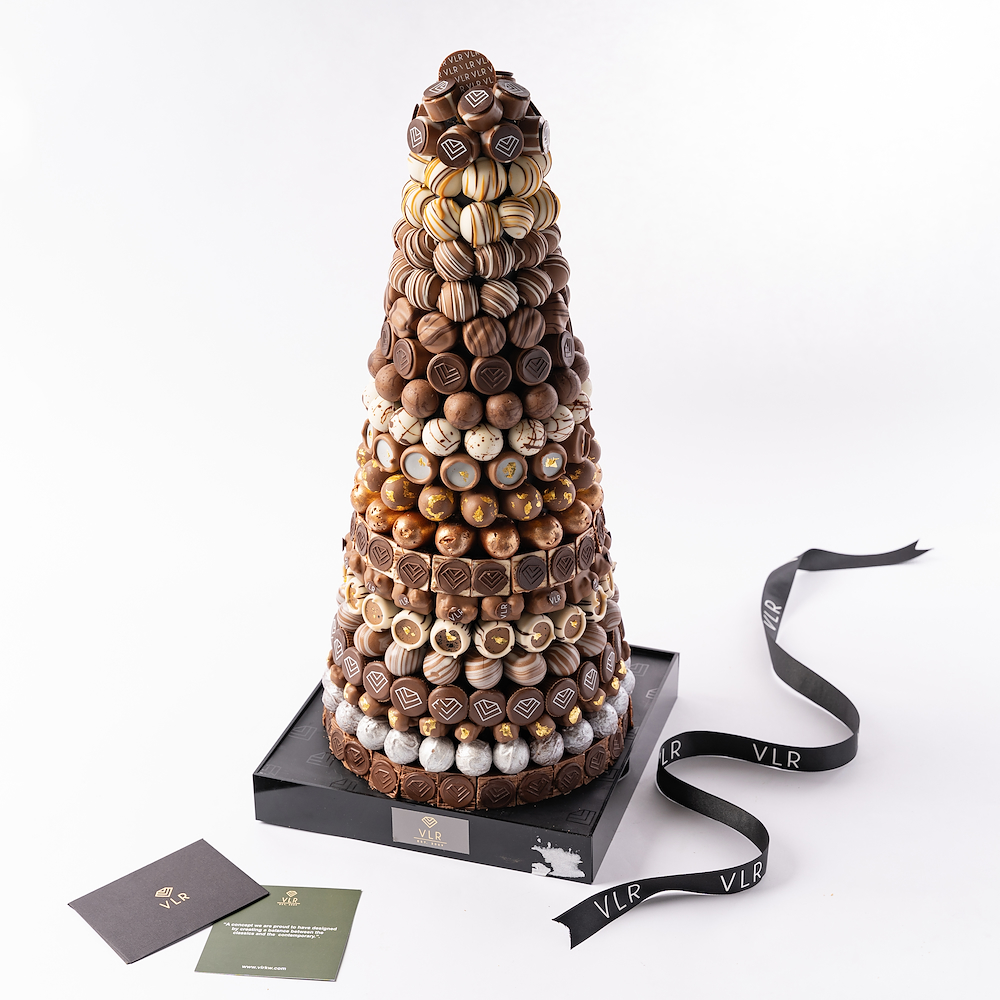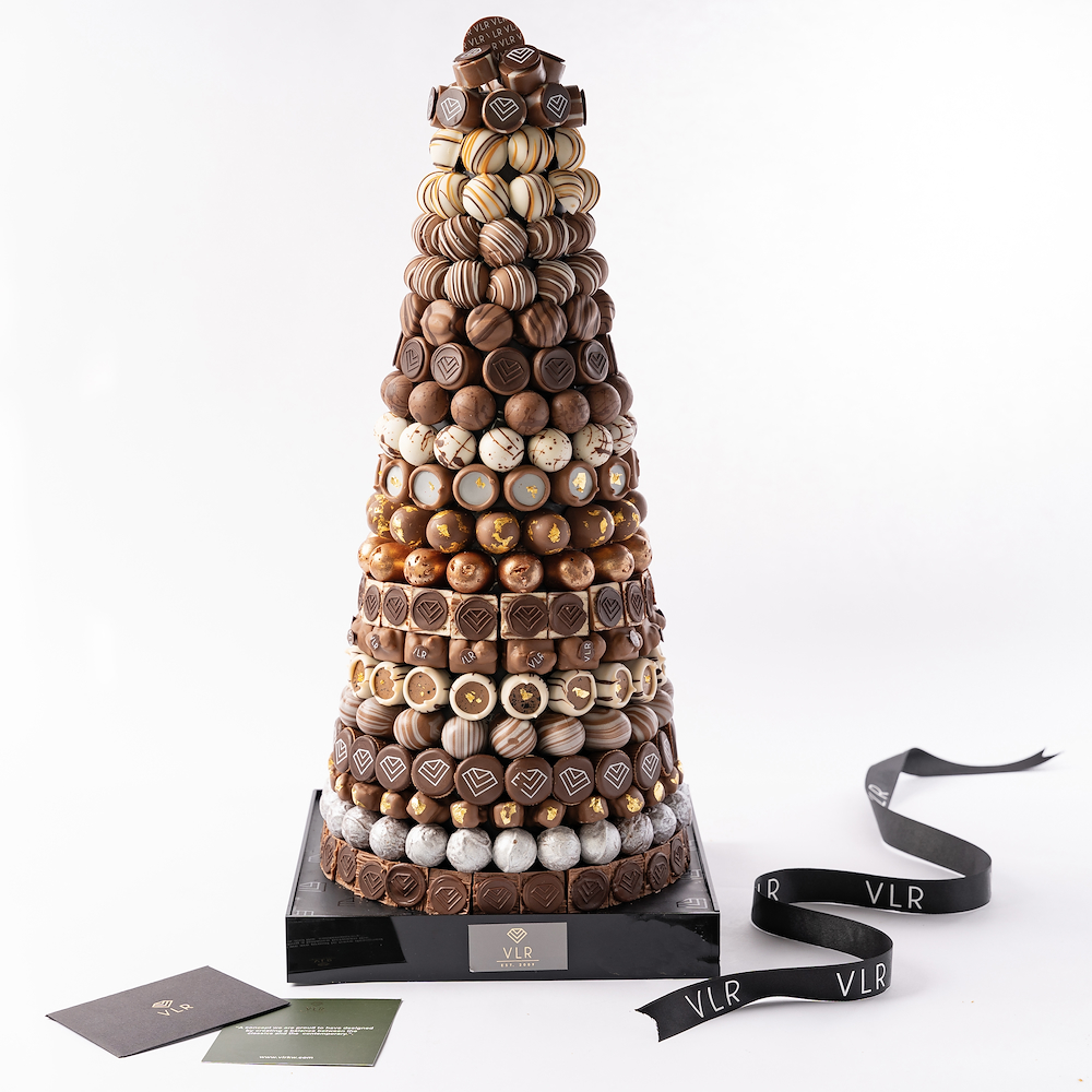 The tower contains 4 kg of mixed delicious premium chocolates.