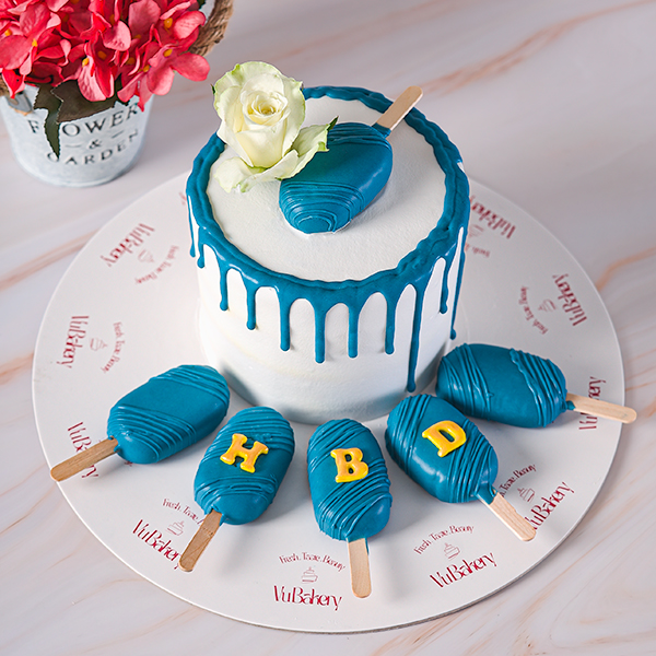 4 inch cream cake with 6 pop cakes.