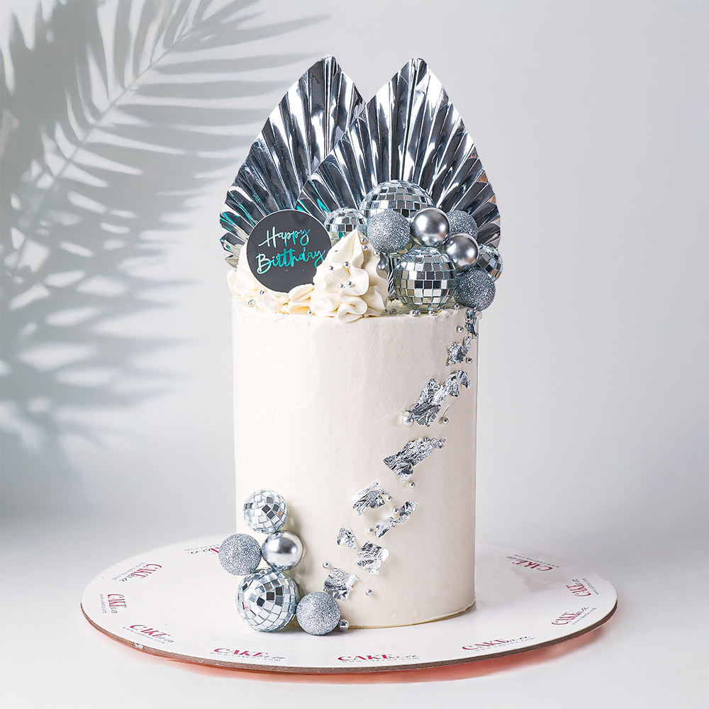 A 6 inch cream cake with roses flowers. Decorated with an edible marble sugar sheet.
