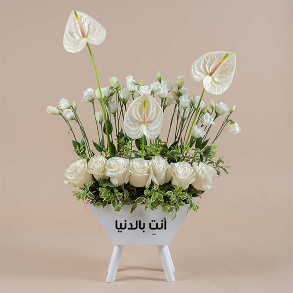 The bouquet contains a mixture of natural flowers from alstroemeria, gerbera, hydrangea, roses and baby roses.
