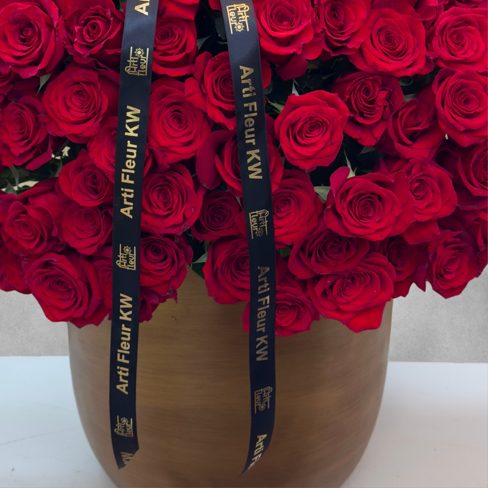 Three hundred and fifty red roses in a golden capi pot.