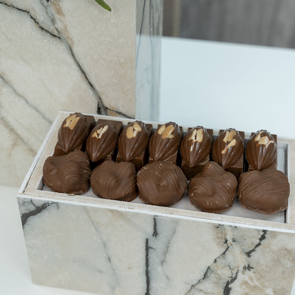 This bouquet contains Alstroemeria, Chrysanthemums and roses with chocolates.
