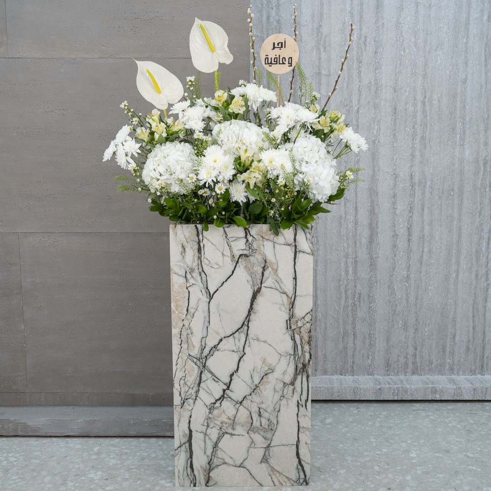 This bouquet contains alastromeria natural and artificial hydrangea.