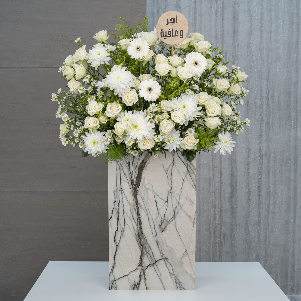 A bouquet that contains roses, baby roses, chrysanthemums and gerberas.