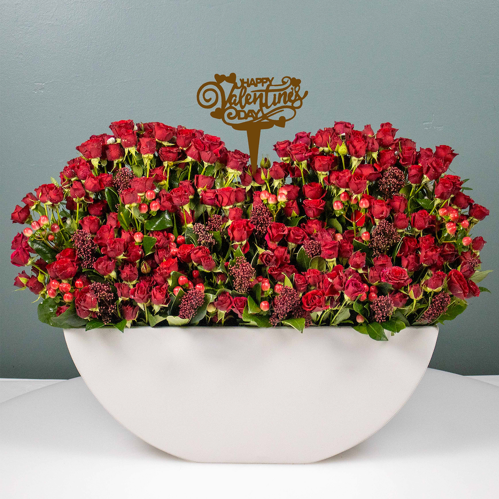 This handmade basket contains purple chrysanthemum flowers.