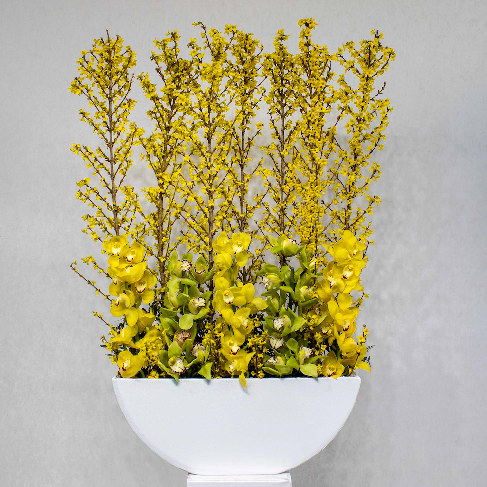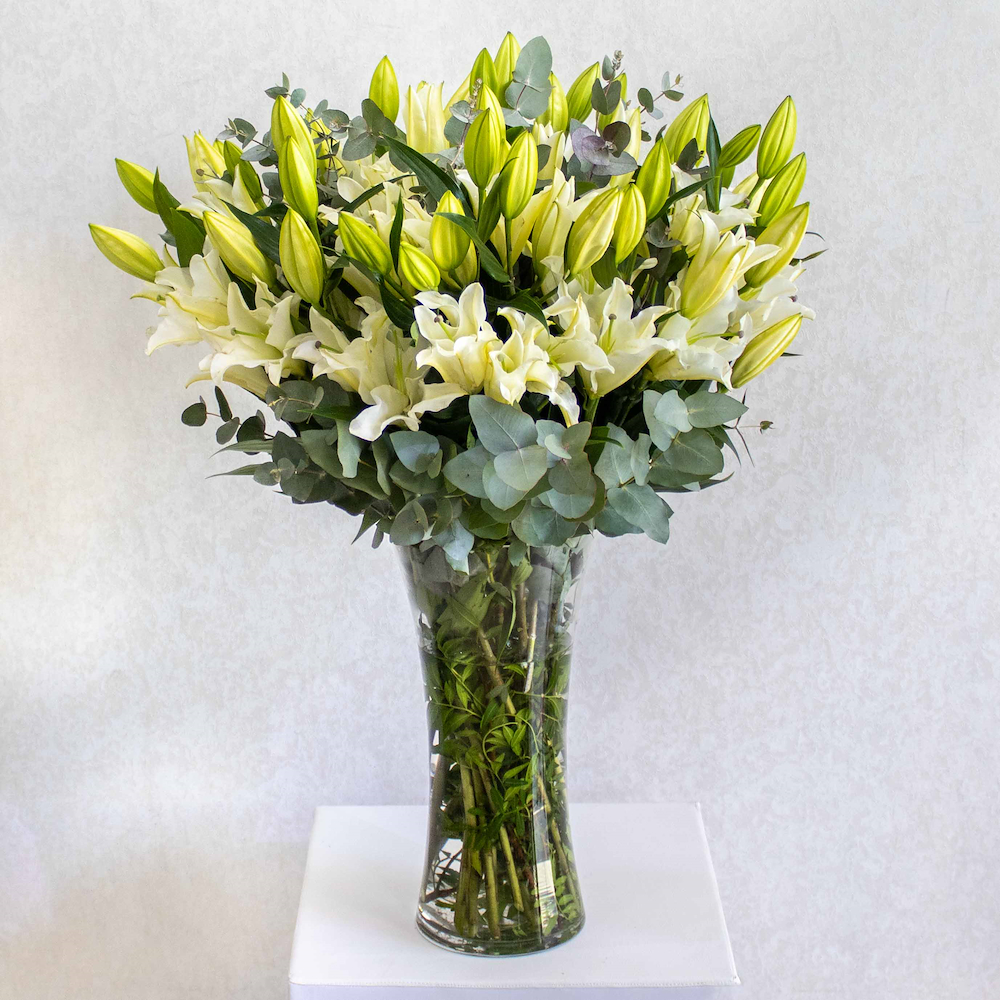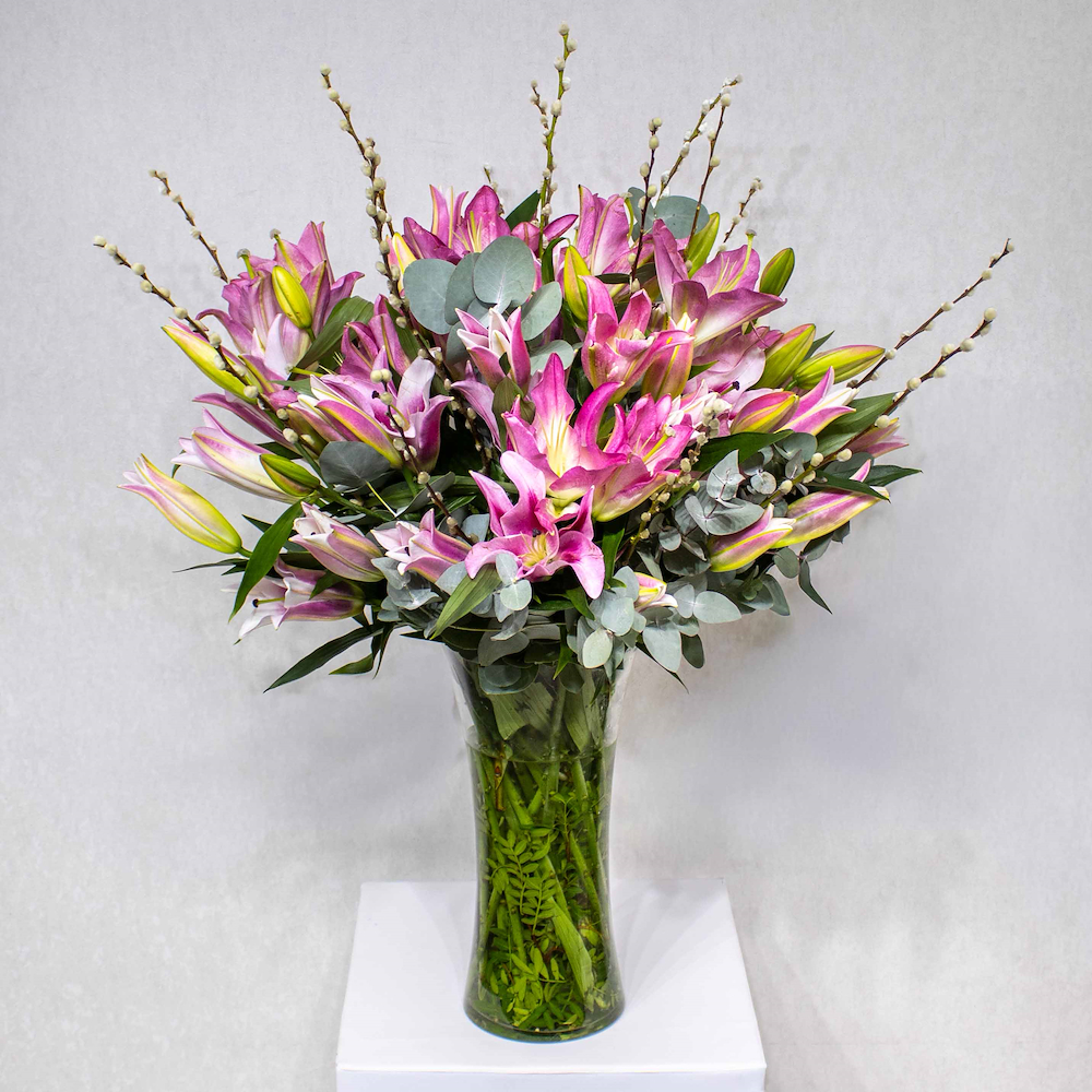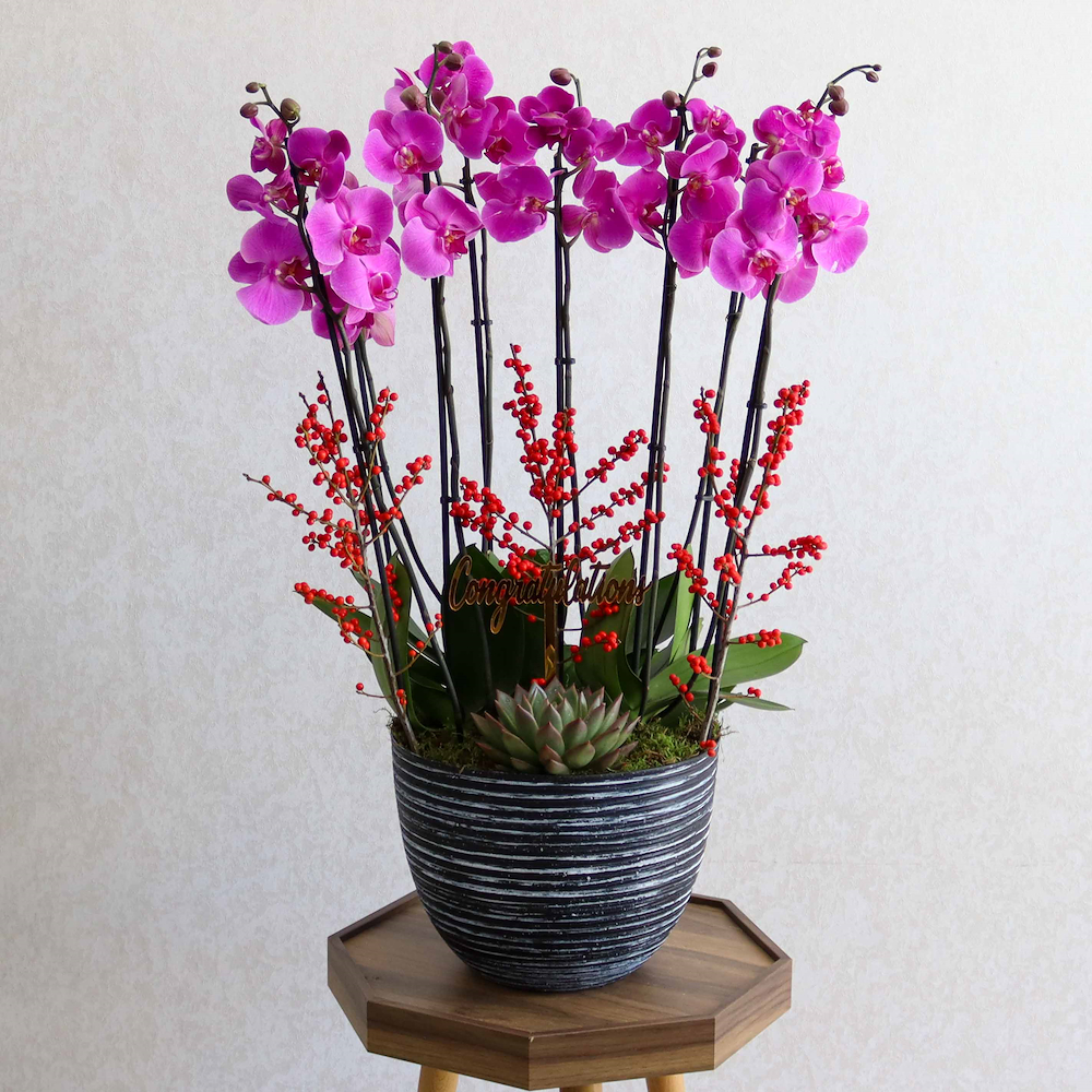 This bouquet contains pink hydrangea with white orchid plants beautifully arranged in a vase.