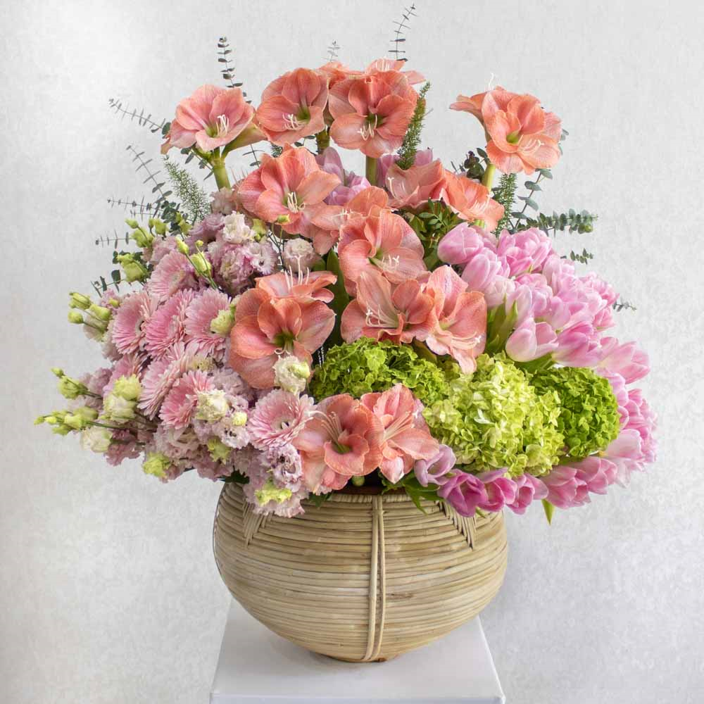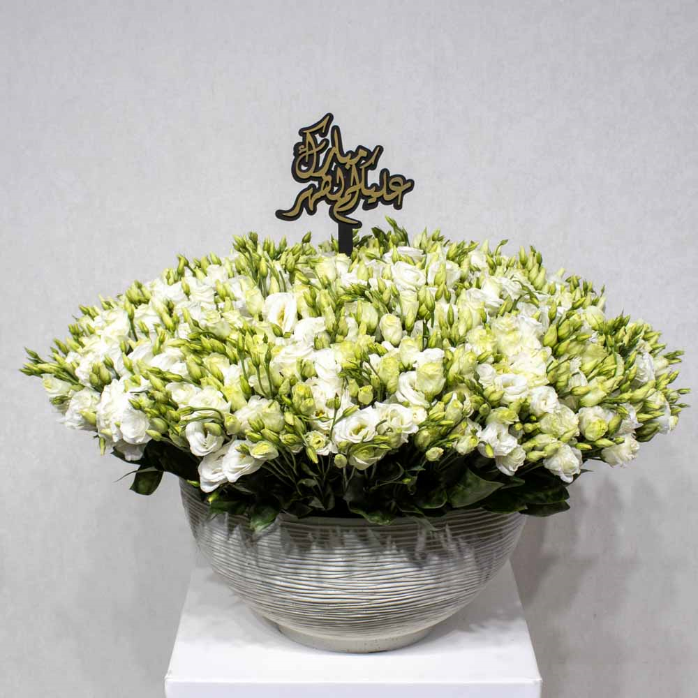 This bouquet contains white orchid plants beautifully arranged in a vase wrapped.