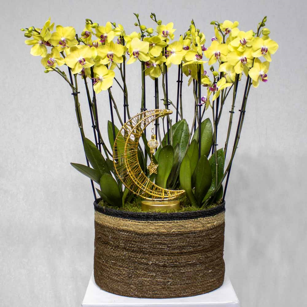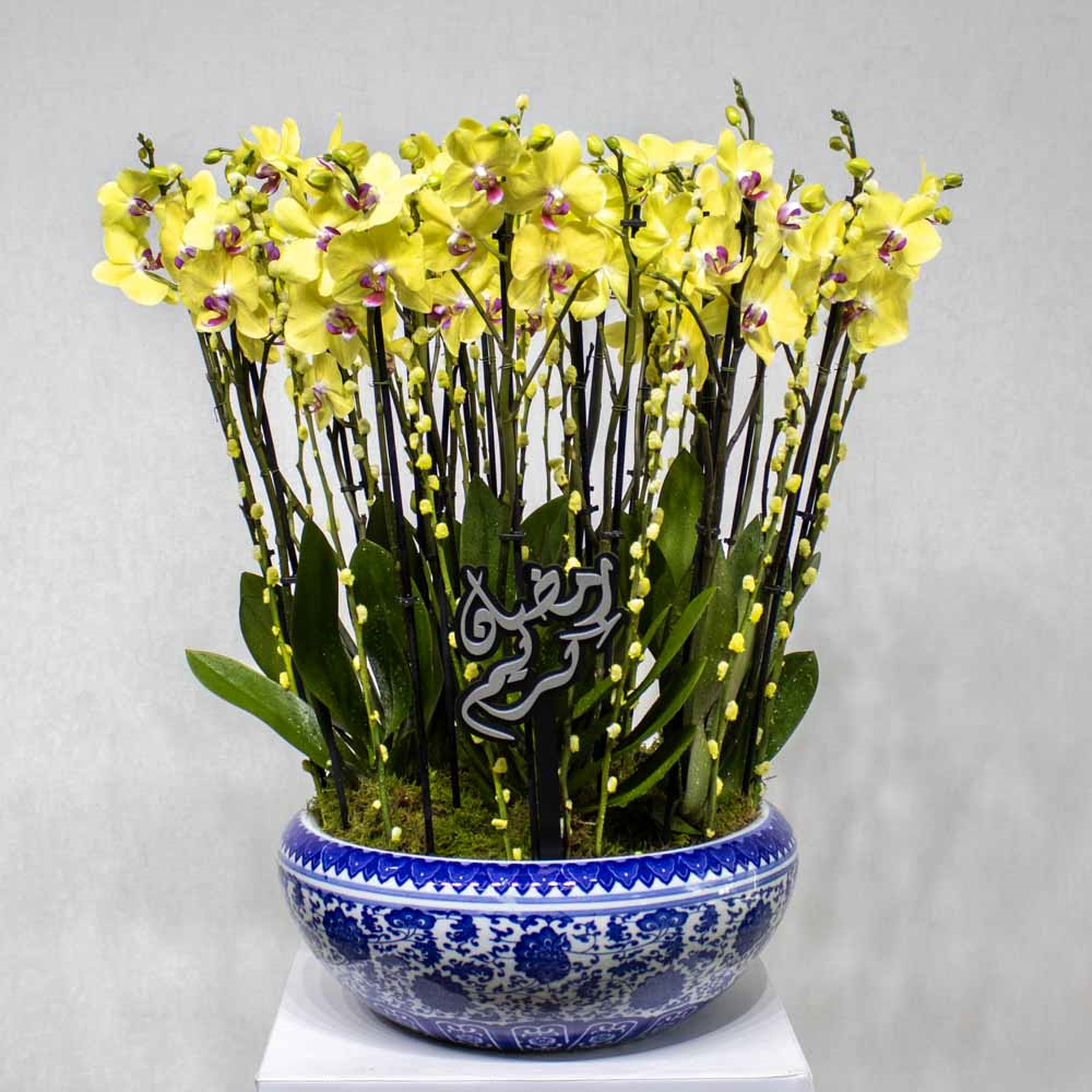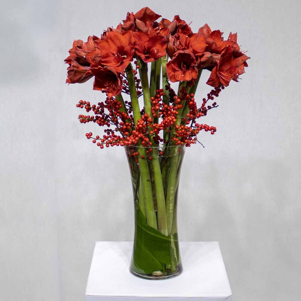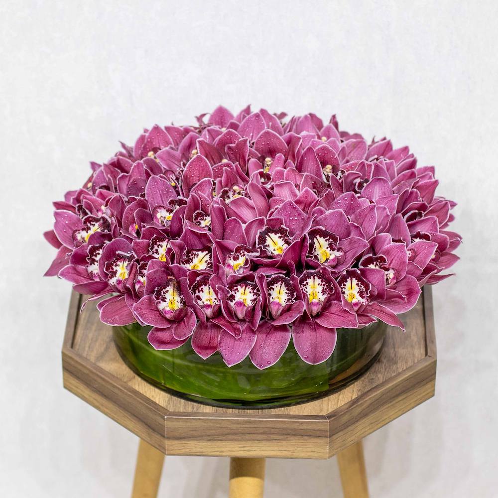 This bouquet contains fuchsia baby roses beautifully arranged in a big stand.