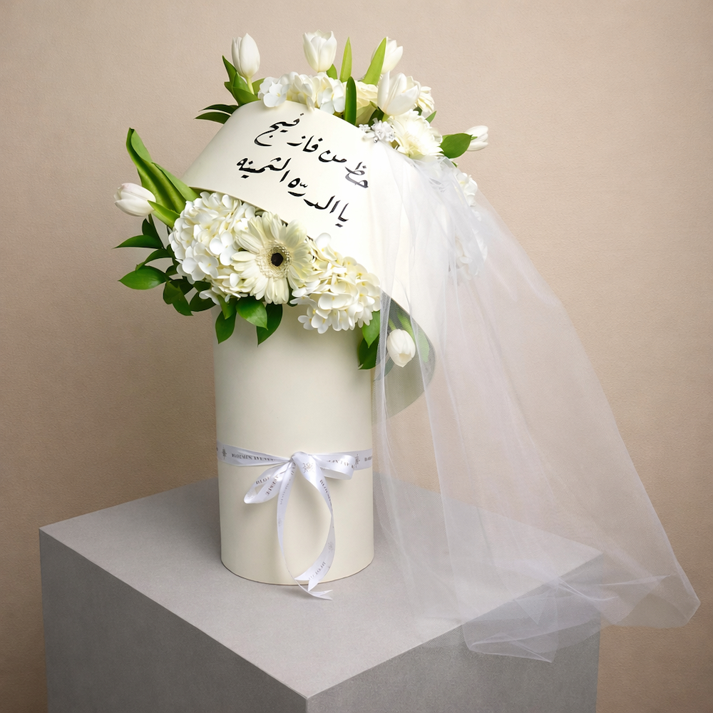 A bouquet of protea flowers, neatly arranged on an elegant tray. Comes with a cup.